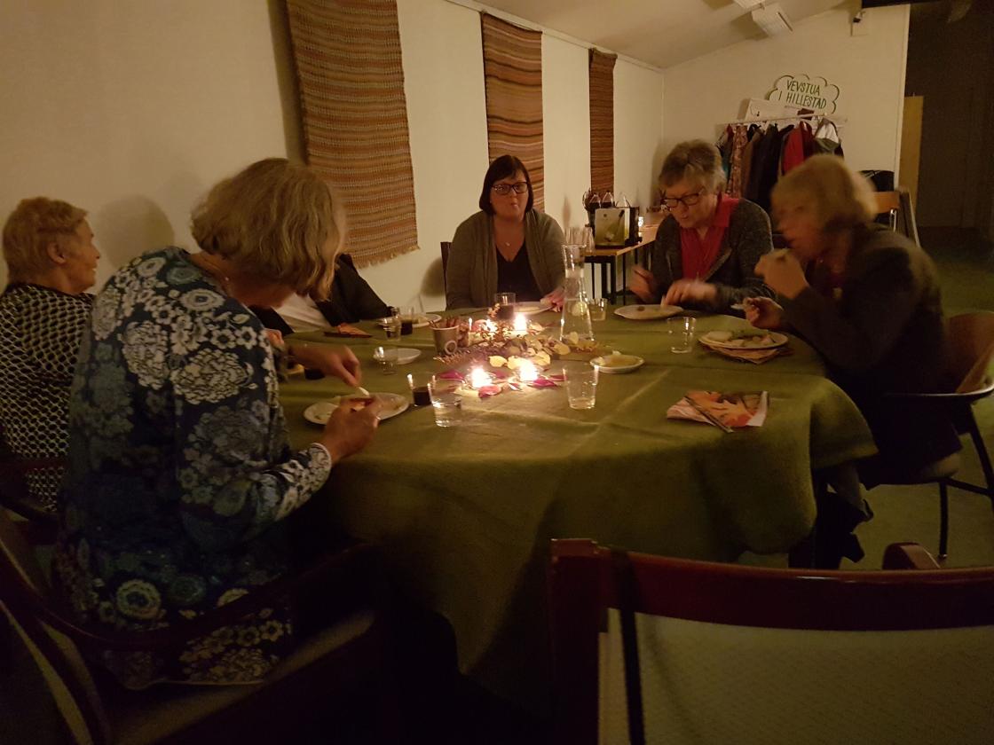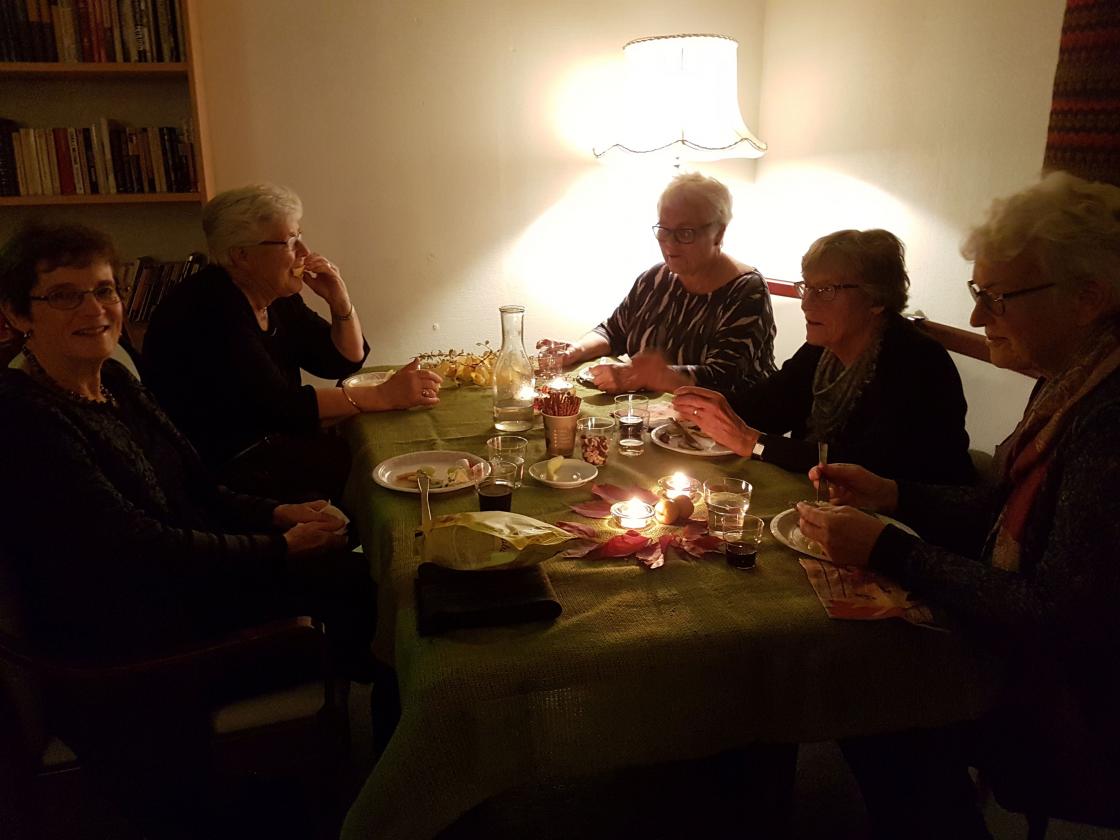 Med levende lys og alle de sprakende farger som høsten har å by på, møttes bygdekvinnene til ost og vin denne fredagkvelden.