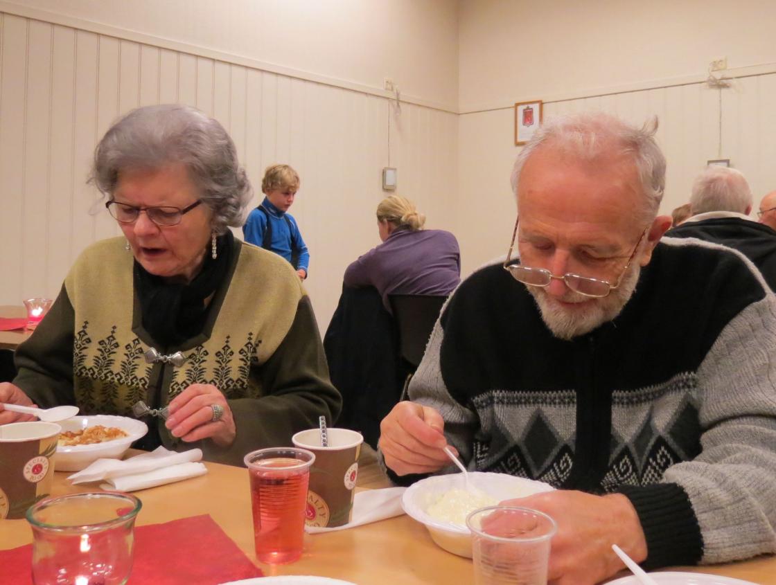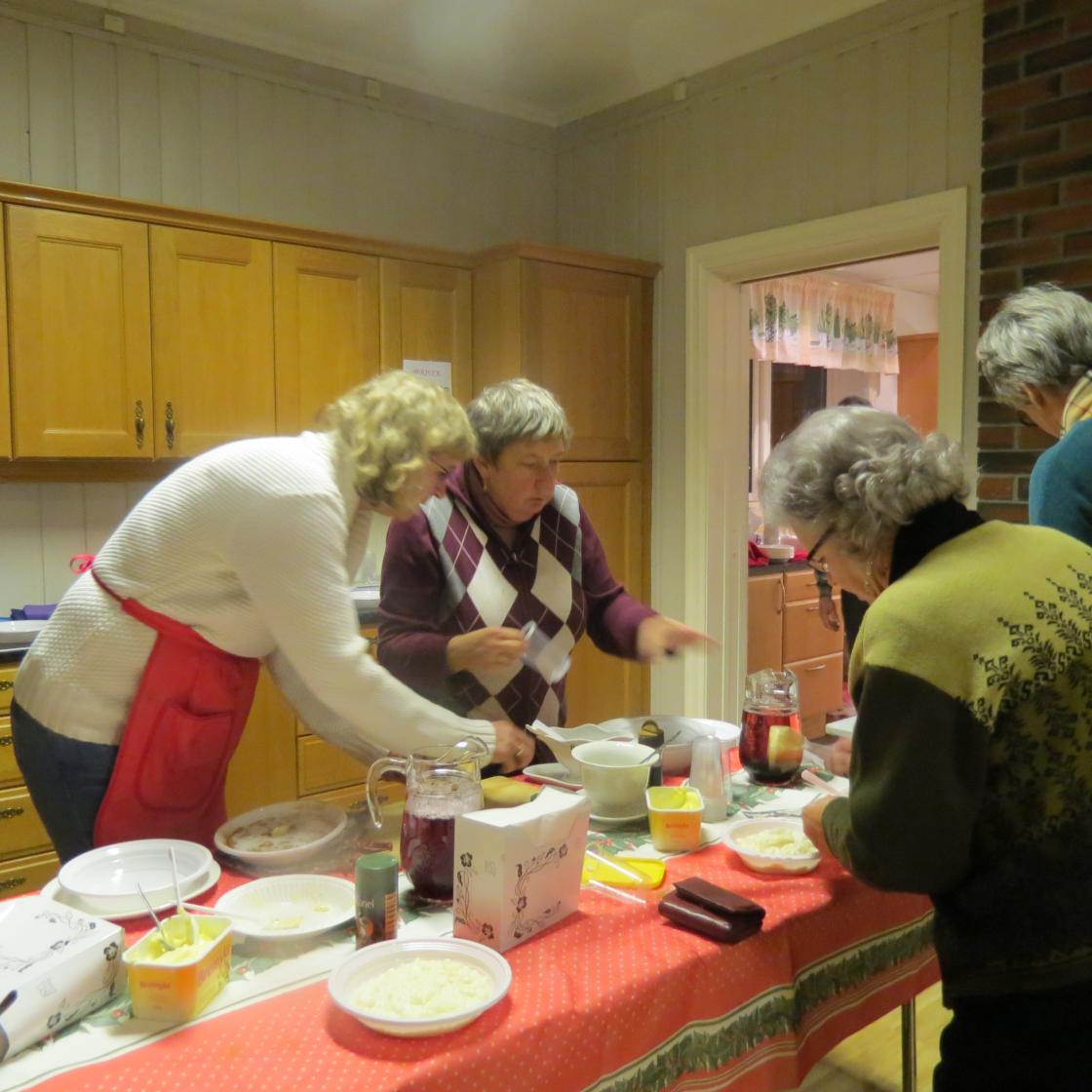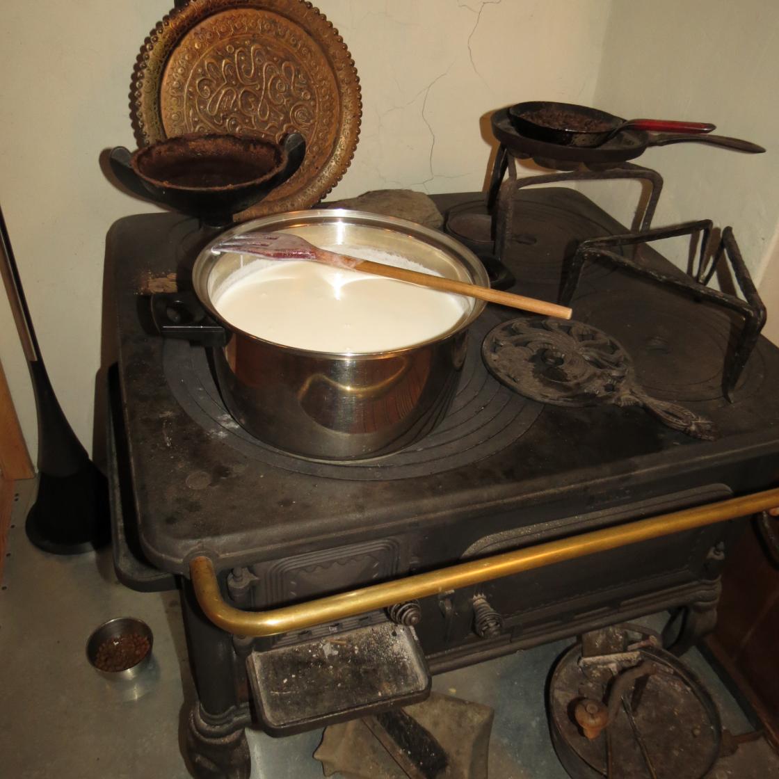 Grøten kokes ferdig før vi skal avsted med den til Bygdehuset