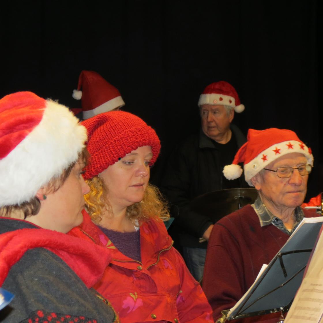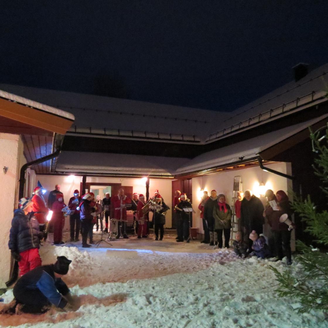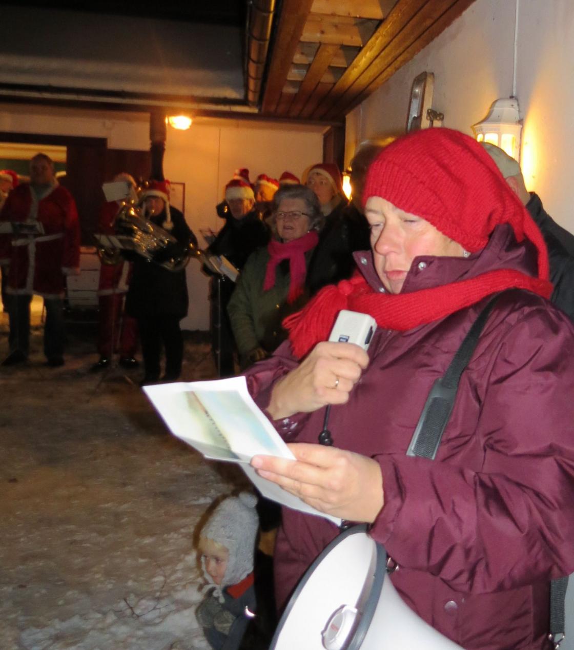 Hillestad Promenadeorkester spilte noen fine julemelodier før det var en liten tale av Åse Kristine Guthus som tente lysene på grana. Ringer rundt juletreet ble det mange av og julesangene ble sunget før vi trakk inn for å høre mer på Promenadeorkesteret og kjøpe saft og grøt - og en kopp kaffe etterpå...