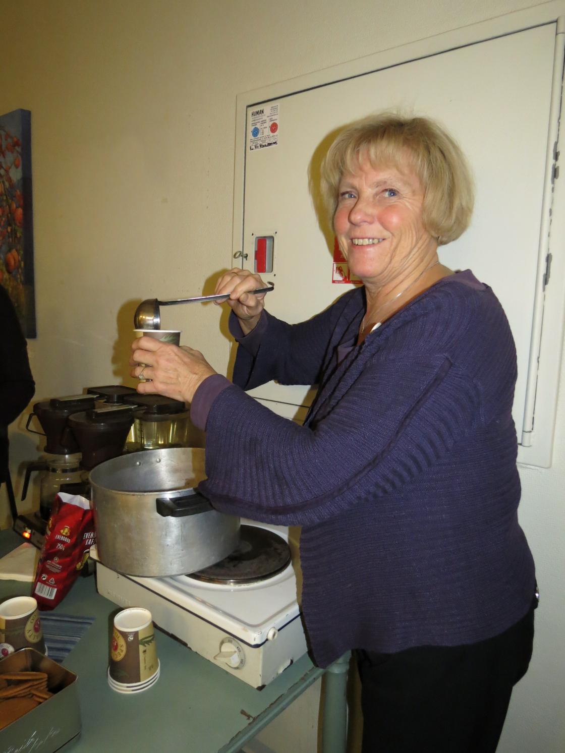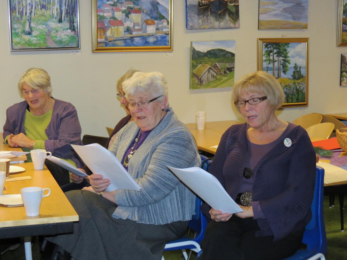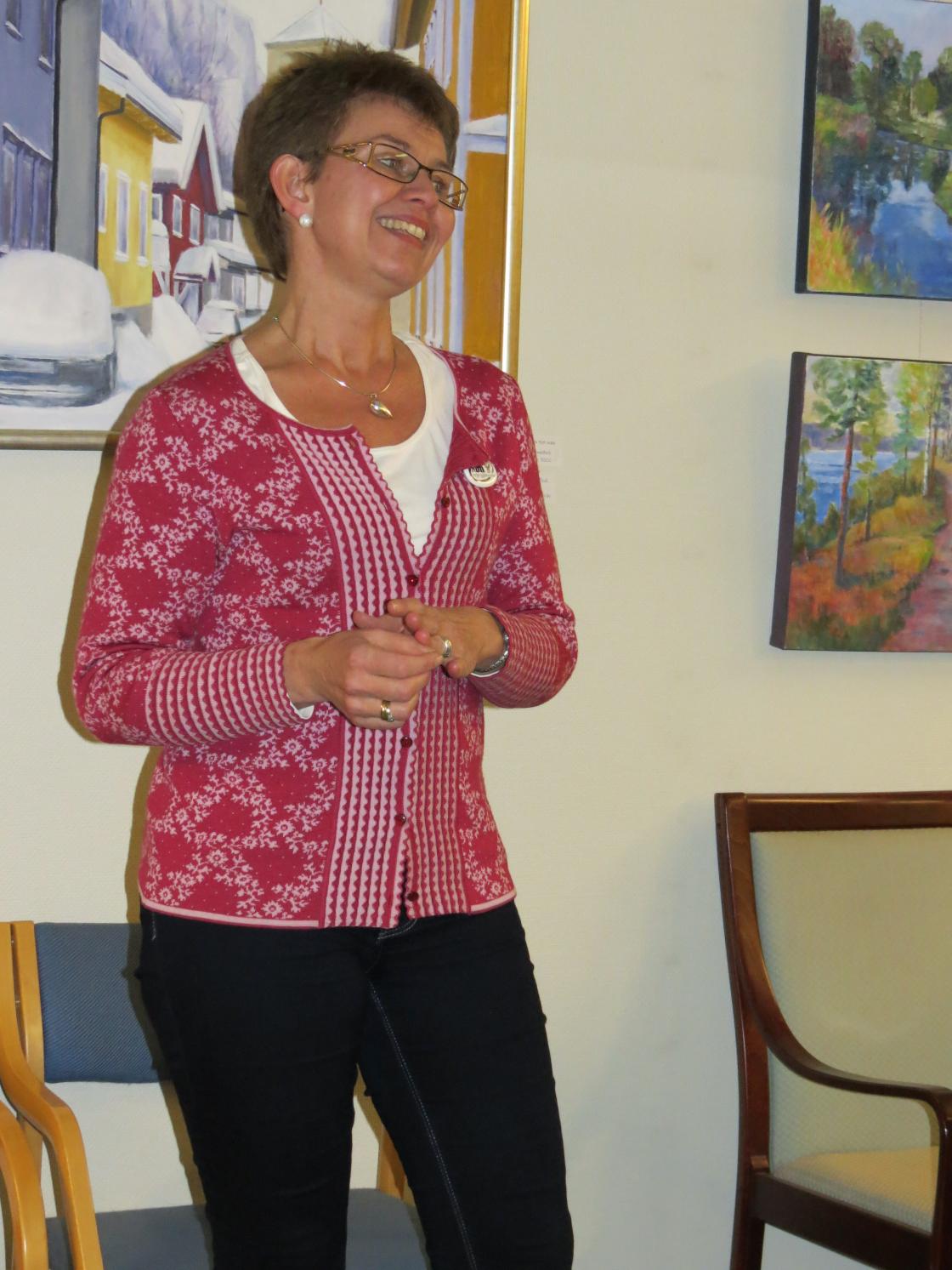 Fyrverkeri = Unni Kaupang Myhre. Tidligere organisasjonskonsulent i NBK kåserte for en samling Hillestaddamer. Og hun fenget tilhørerne - slik hun pleier.