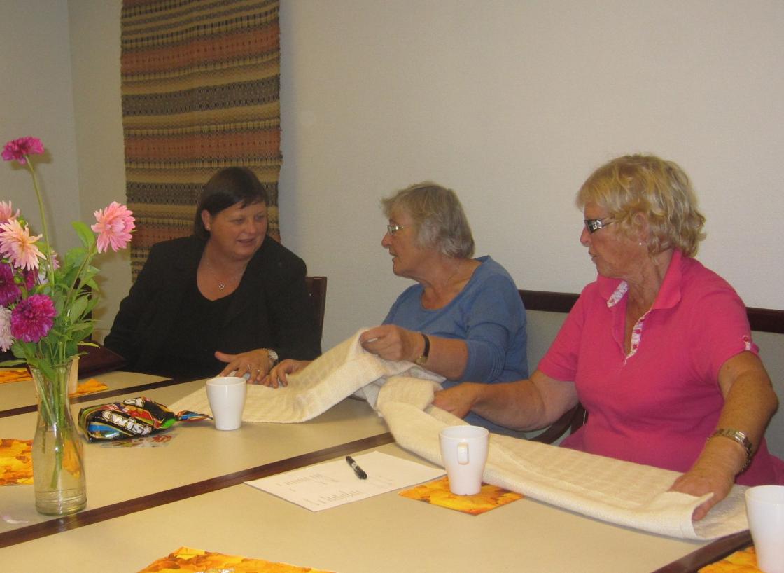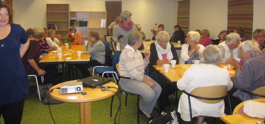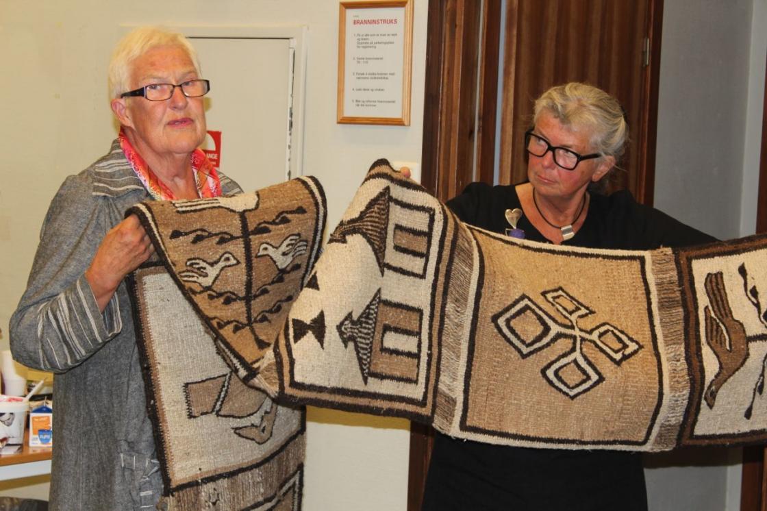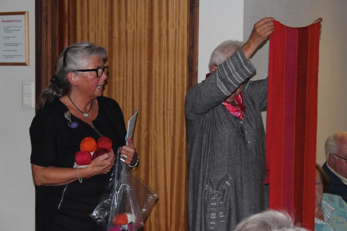 Ingebjørg Vaagen kom og holdt foredrag om veving som kvinnehåndverk og om tradisjonelt materialbruk og Nora-Marie Sogn Wiik fortalte om lekre skjerf og sjal hentet fra det nye vevheftet "Kjærtegn til halsen".
