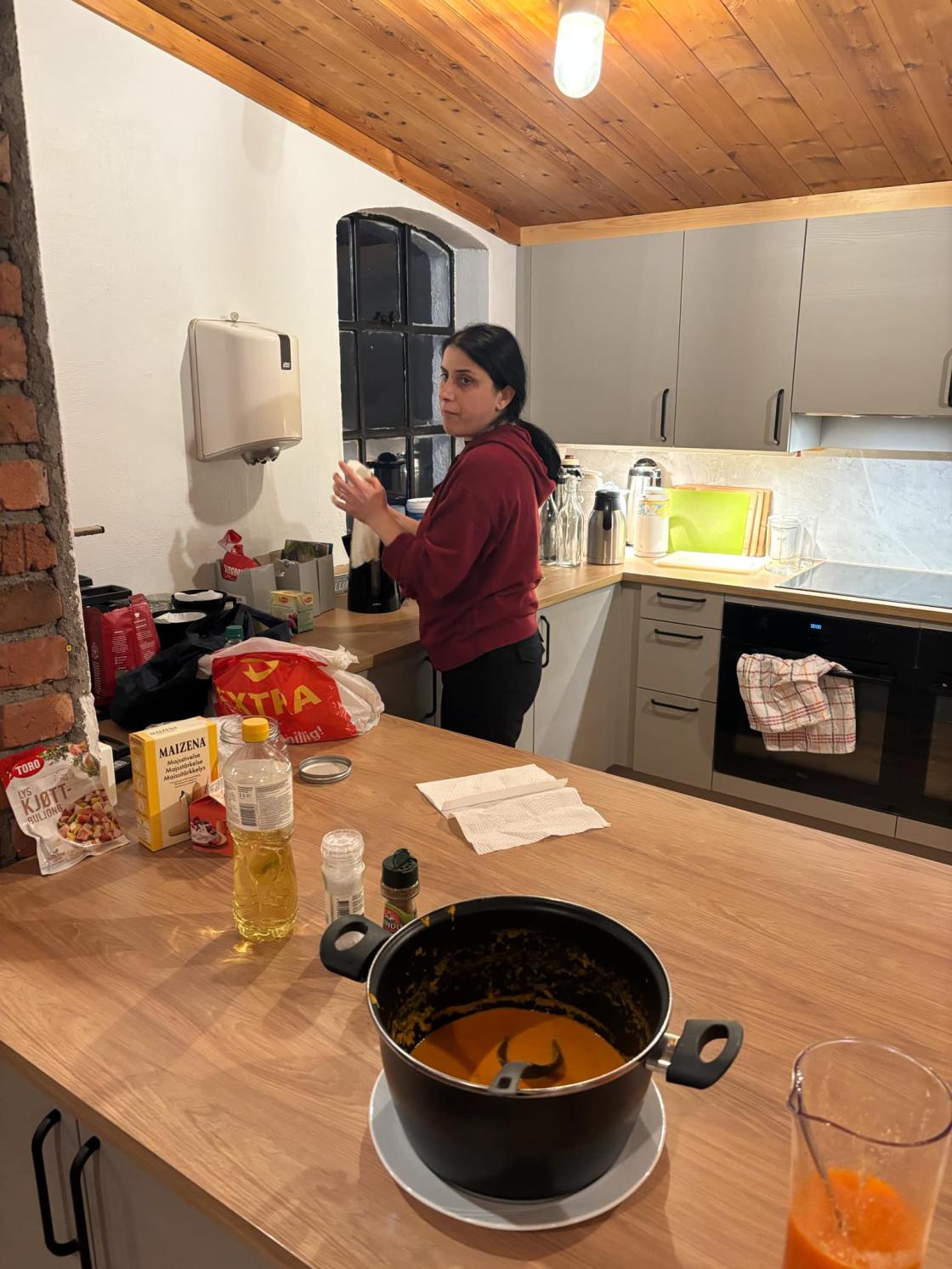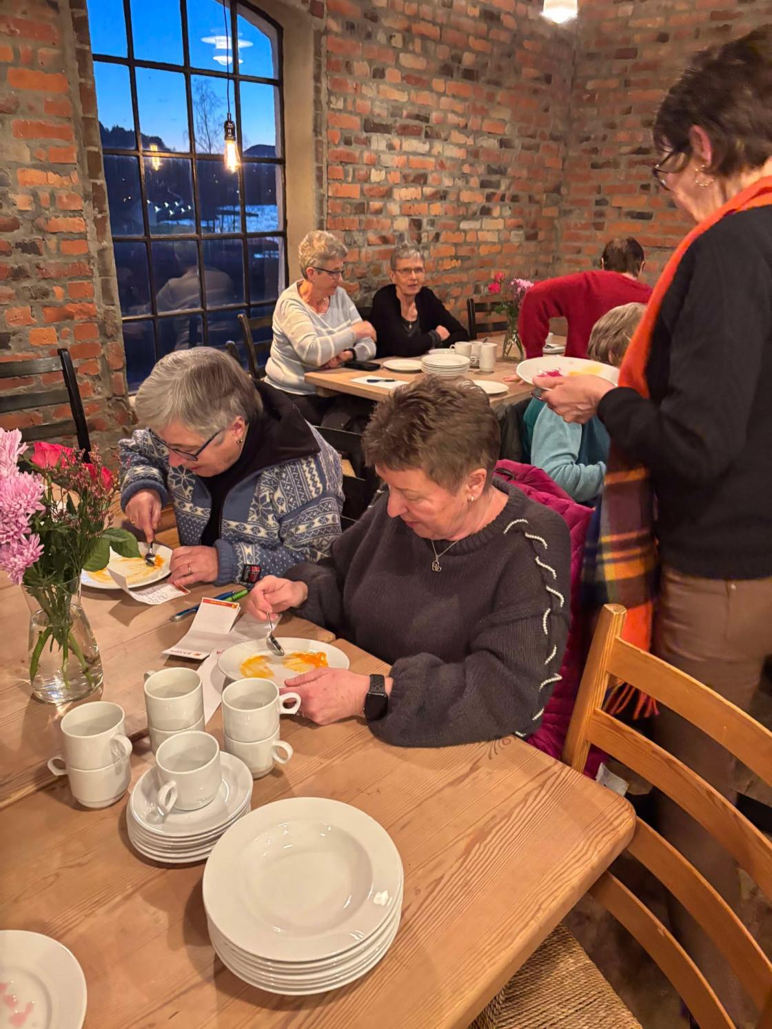 Det var ca 25 som dukka opp for å høyre på kokken Silje Katrin Lunde frå Østerhus, Erfjord. Silje har jobba mange år på Kulp på Sand, og ho tok oss med på eit eventyr. Alt høyrest så lett ut: ho laga sauser av dei grønsakene som ligger i kjøleskapet, løkpulver av løkskallet, og slik fekk vi ein heile haug med tips om korleis ein kan bruke det som ein ellers kanskje ville kastet. Her var det mange gode tips å henta.