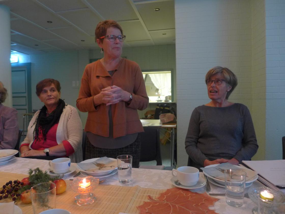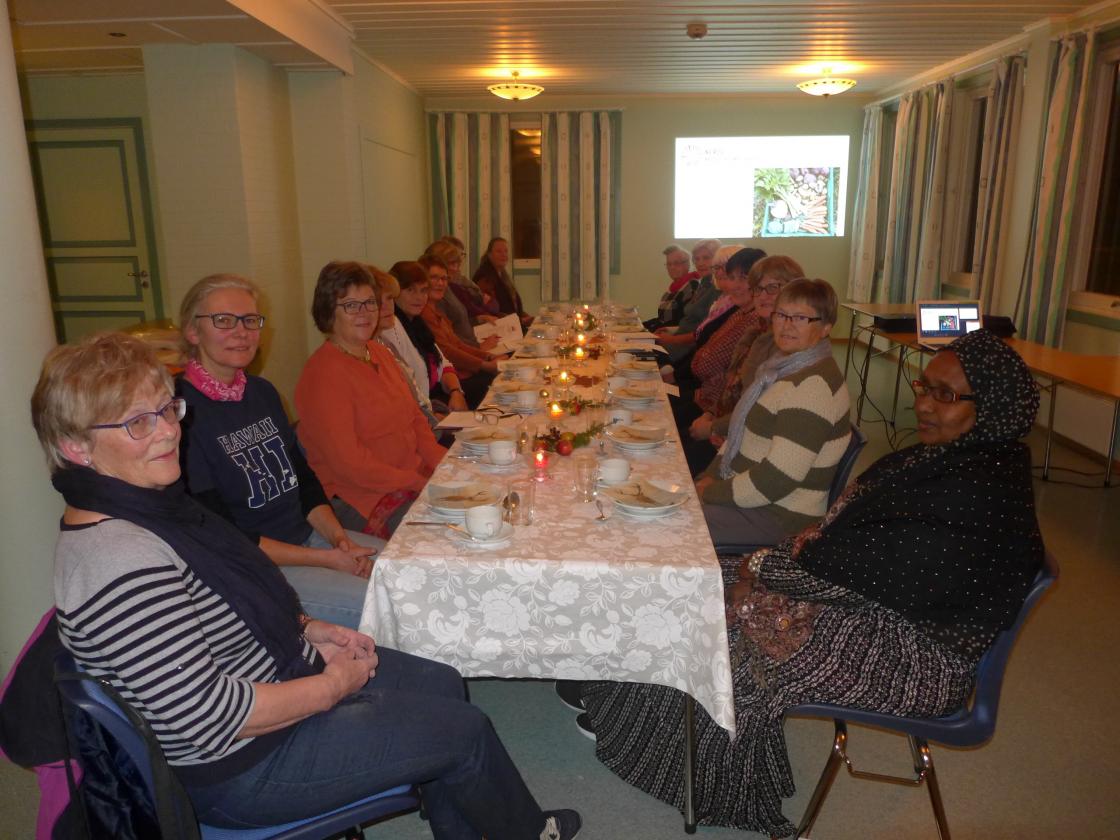 Me kom til nydeleg dekka bord. God stemning i stugu. Leiaren ønskte velkommen og leia møtet med stødig hand. Valet gjekk greit, valkomiteen hadde gjort eit godt forarbeid. Leiaren frå 2017 held fram eit år til. Kasseraren gav seg etter åtte år. Tusen takk til Berit for framifrå jobb gjennom mange år! Elles var det ikkje så store endringar. Noen gjekk ut og andre kom inn. Me ønsker det nye styret lykke til i 2018. Hovedtema denne kvelden var Nerol økologiske andelshage. Marit fortalde og synte bilete frå arbeidet i hagen. Marit hadde med seg Fatima Yusuf som er ein dyktig og ivrig hagearbeider.Me fekk god tid til å prate om aktuelle saker i laget. Me fekk god bevertning. Grønsaksuppe smakte godt i haustkulda. God, varm kaffi og gode kaker. Tusen takk til styret som stelte til så godt og triveleg møte. im