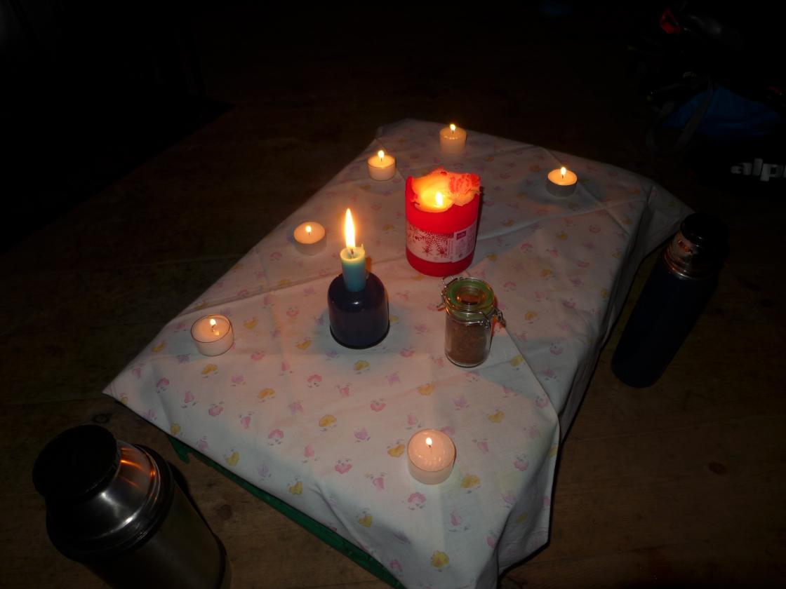 Bord hadde vi også med for anledningen....og duk! Vi kan da ikkje eta utan duk og lys på bordet.!