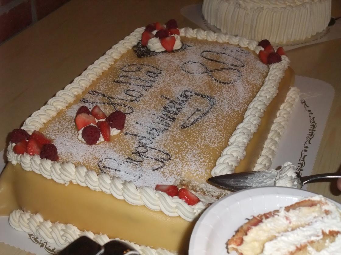 Da var det tid for jubileumskake, også den laget av Helle, samt kaffe. Etter kaffen var det loddtrekning, mange fine premier og blomster, samt fruktkurv. Til slutt reiste vi oss og sang «Deilig er jorden».