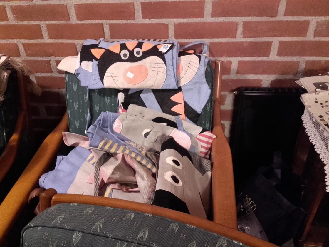 Hun hadde med strikkede sokker og vanter, sydde forklær og flotte vevde linløpere og duker fra damene i Litauen.