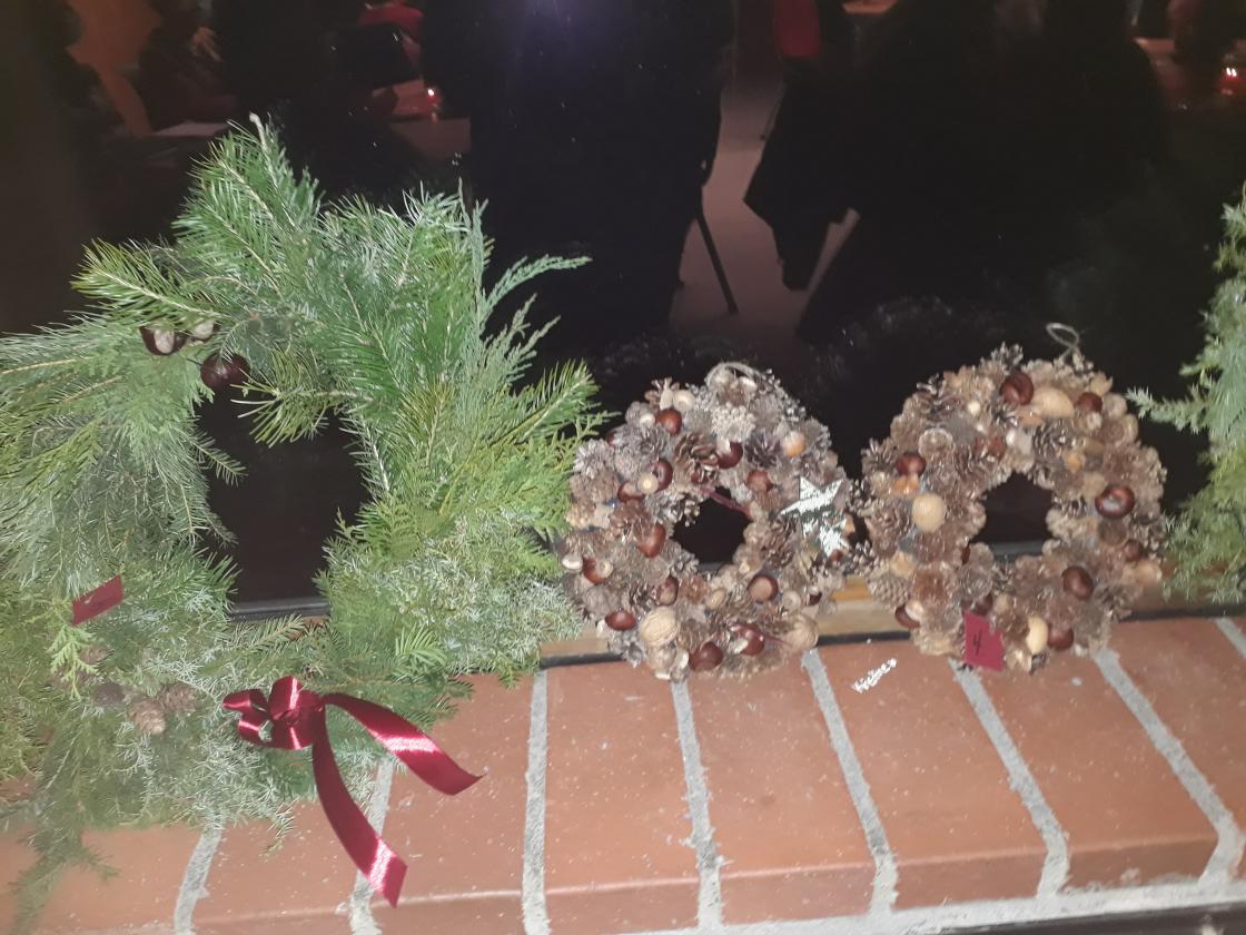 Bygdekvinnelagets julelotteri ble trukket på julemøtet den 8/12. De heldige vinnerne blir offentliggjort i lokalavisa Kanalen som utkommer neste torsdag. Det var totalt 28 gevinster - i hovedsak laget av bygdekvinnelagets egne medlemmer. Her kommer noen bilder av de vakre julekransene, kongle/nøttekransene, granbarnissen + div. andre håndarbeider og gevinster.