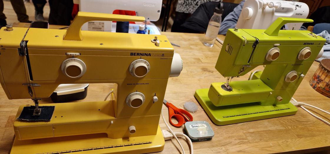 Ta med egen symaskin og det du trenger til syprosjektet ditt. Det kan også være lurt å ta med skjøteledning.