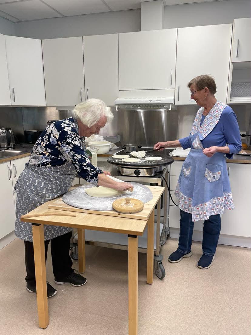 Ingjerd og Wigdis fikk god hjelp til både kjevling og utstikking, mens noen av beboerne mente de hadde bakt nok i løpet av livet – og nøt heller å få baksten servert 😊.
