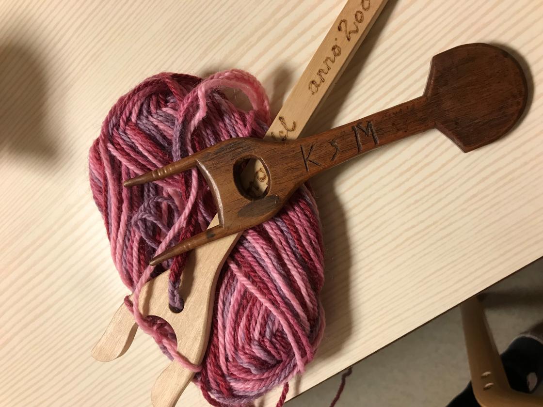 Aud Moe hadde kveldens andre gjettelek til oss. Det ble nok en gang sendt rundt et treverk som ingen skjønte hva kunne være. Det viste seg å være noe som het snorgaffel fra før 1600-tallet. Her kunne det produseres vennskapssnorer, snorer til briller og smykkesnorer. En vellykket og lærerik kveld og takk til alle som delte sin kunnskap og historier med oss.