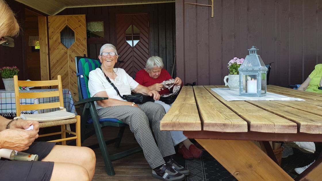 En flott kveld i juni med mange varmegrader tok vi turen på hytta til et av våre medlemmer. Oppe ved Mathiaskilen ønsket Signe Elisabeth Lofstad oss velkommen. Ute på terassen hadde vi pølsefest i den fine kveldssola. Etter hvert som myggen ble plagsom, og en runde med quiss, flyttet vi inn i hyttestua hvor vi inntok kaffe og is. Leder Elsa Ødegaard hadde fått e-post fra fylkesstyret med ønske om God Sommer og info om høstens program. Se vedlegg.