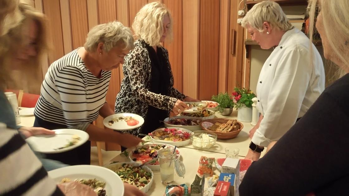På høsten første møte hadde vi besøk av kokk Inger Marit Dalhaug. Hun hadde laget mange varianter av salater, og vi ble tatt med inn i en verden av sammensetninger ingen av oss hadde tenkt var mulig.