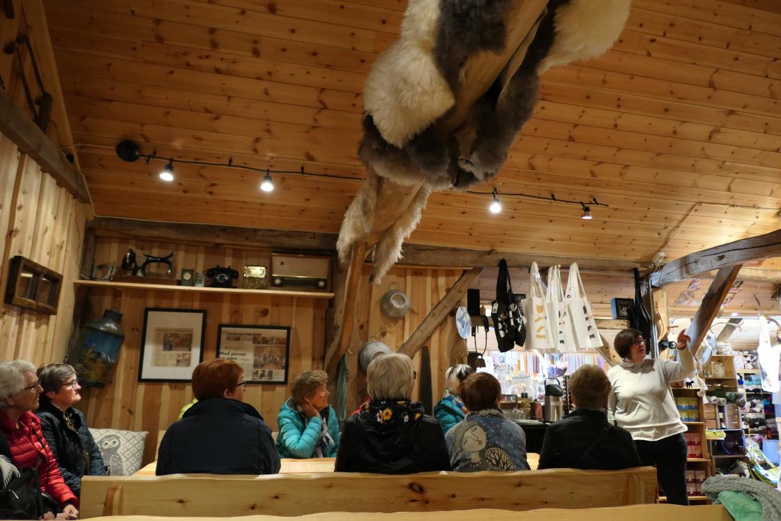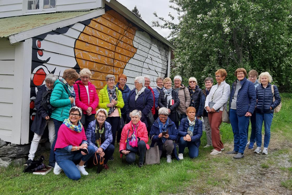 Tysdag 28.05.19 arrangerte turkomiteen blåtur. Mange møtte ved parkeringsplassen til Mikkelparken, fleire kom på undervegs. Det bar innover fjorden , då me stoppa ved Vasstun Gartneri i Odda, talde me 21 stk. Me rusla opp til Vetlaløo på Mannsåker. Her tok vertinna, Brita Gjerding i mot oss i ei varm og koseleg løe. Ho fortalde litt om garden ho og familien overtok i 2001, og korleis dei litt etter litt bestemte seg for å byggja om løa til ein liten butikk og serveringsplass for bygdefolket. Her fekk me kjøpa oss kaffi og kake, i tillegg til at mange handla med seg bl.a. garn.