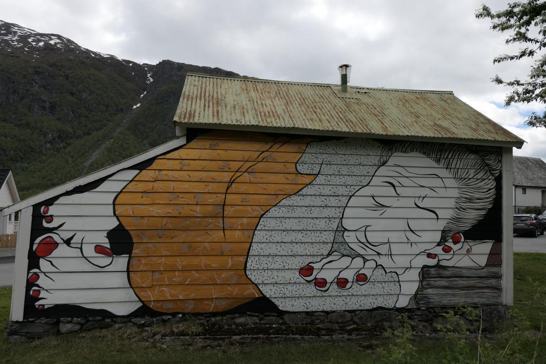 Deretter gjekk turen opp Oddadalen og over fjellet til Røldal. Første stopp her var Bokbua Kalvatræet Litteraturhus. Gunvor Øvregård tok i mot oss og viste oss inn i den vesle husmannsstova, som knapt hadde plass til 21 stk. Ho fortalde om folka som hadde budd her,og om ideen om å laga huset om til ei Bokbu. Her var det bruktbøker i alle rom, frå billige til heilt gratis, for store og små. For dei som våga seg opp den bratte trappa til lemmen, kunne dei finna 2 fulle senger med krimbøker. Fleire nytta høve til å få med seg ein godbit.