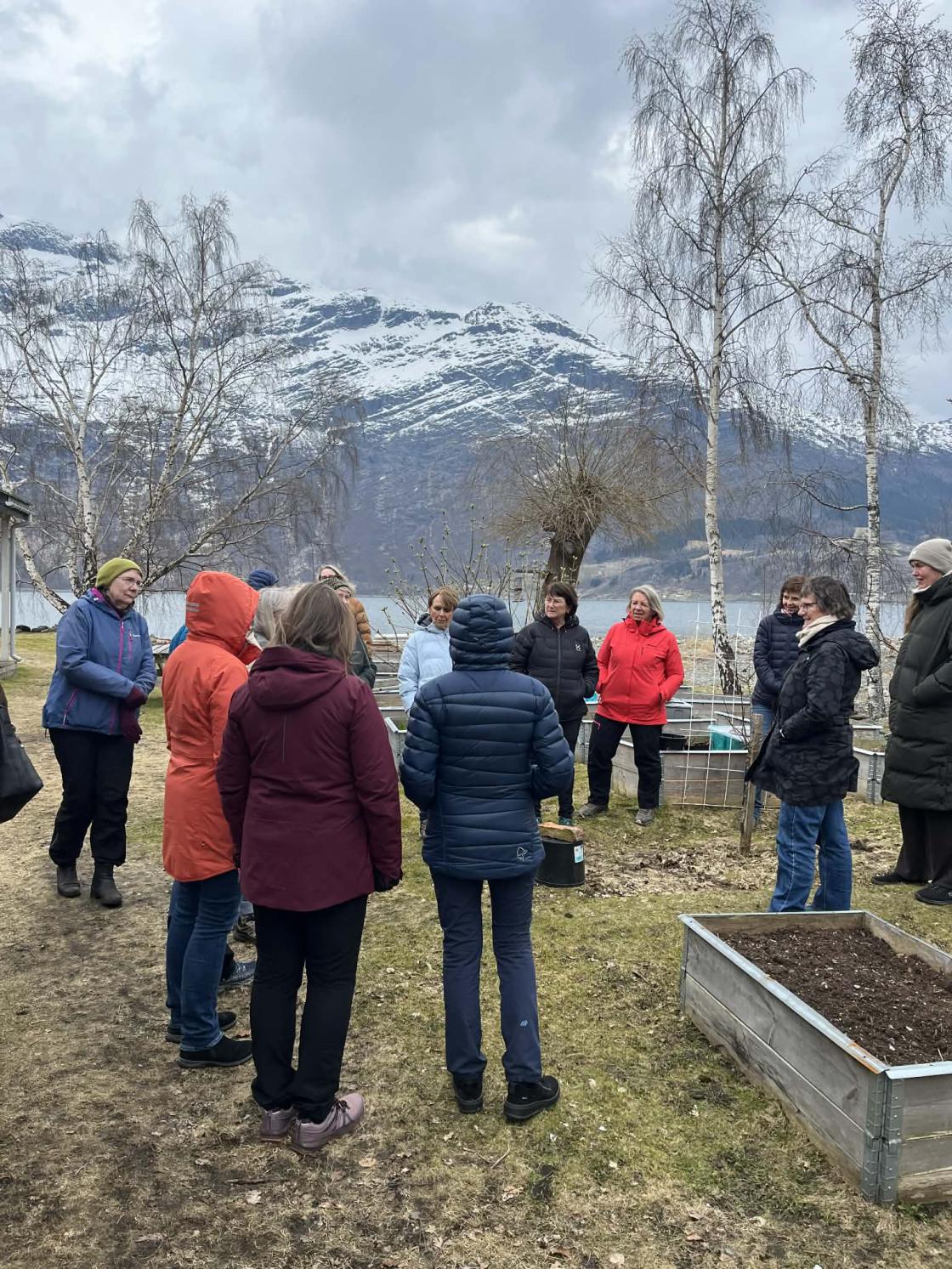 Målfrid Utne fortalde om korleis ho sår i pallekarm, og kva ho har lukkast med å dyrka. Det var mange tips å henta. Kaffien tok me inne. Det vart eit triveleg møte.
