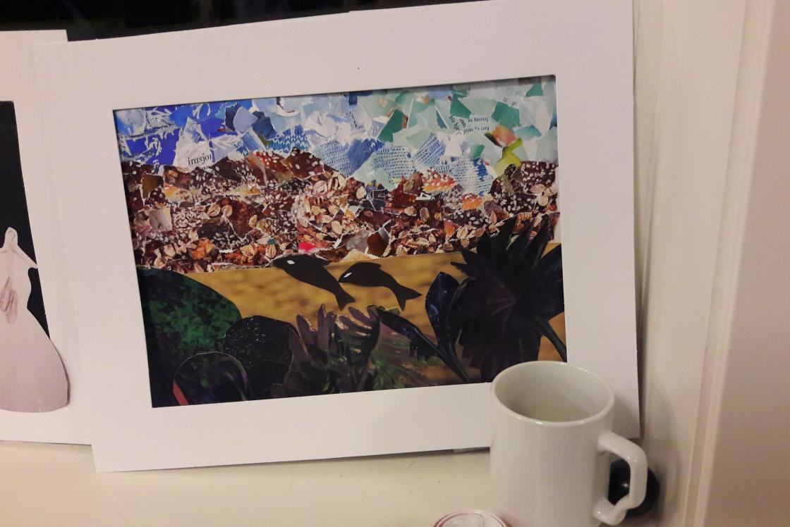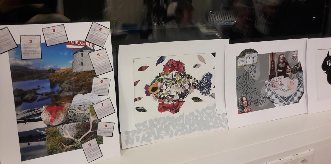 Signe Lise og Margareth hadde førebudd ein aktivitet med å laga collage. Etter maten fekk damene prøva seg. Dei klipte, reiv og limte, og skapte det eine kunstverket etter det andre. Aktiviteten var stor og praten gjekk livleg rundt borda. Innimellom all aktiviteten fekk me og tid til å drikka kaffi og eta blautkaker.
