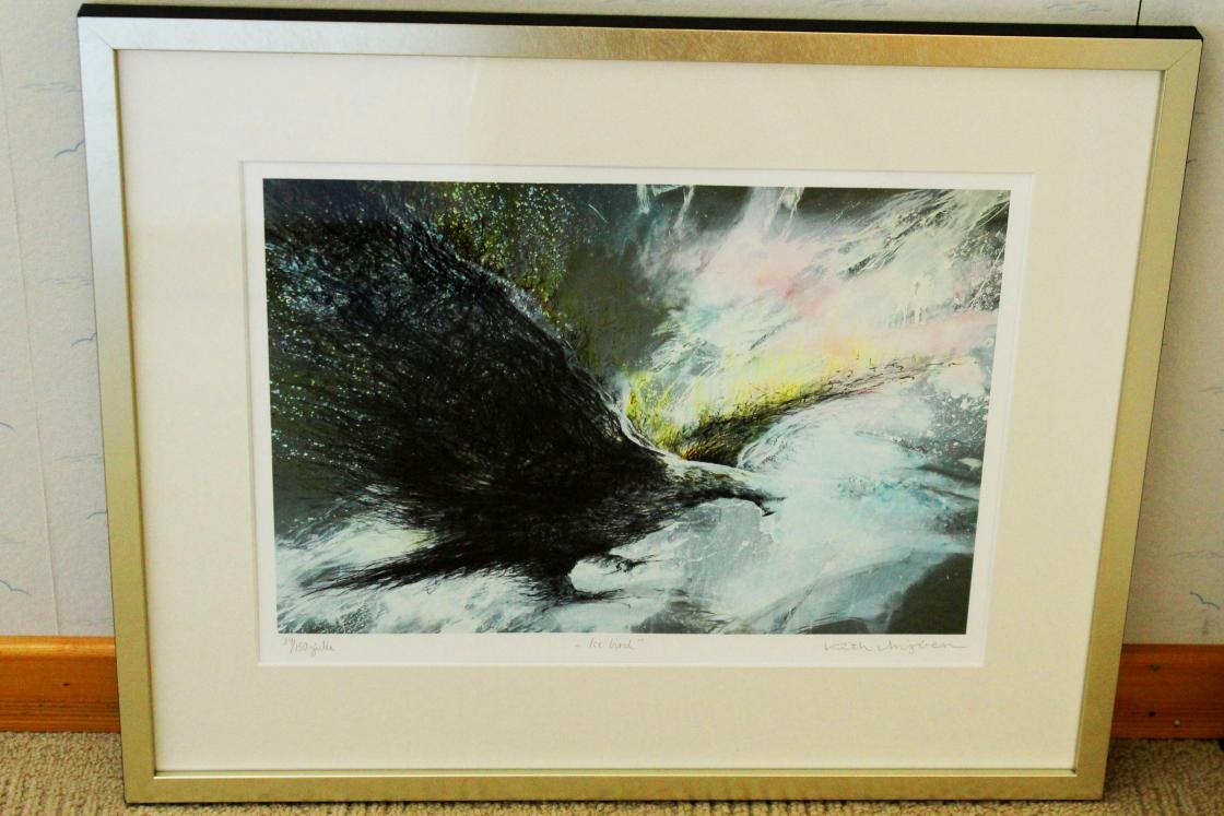Bilde, grafisk trykk, «Ice Bird» av Kith Mjøen, innramma 53x43 cm.