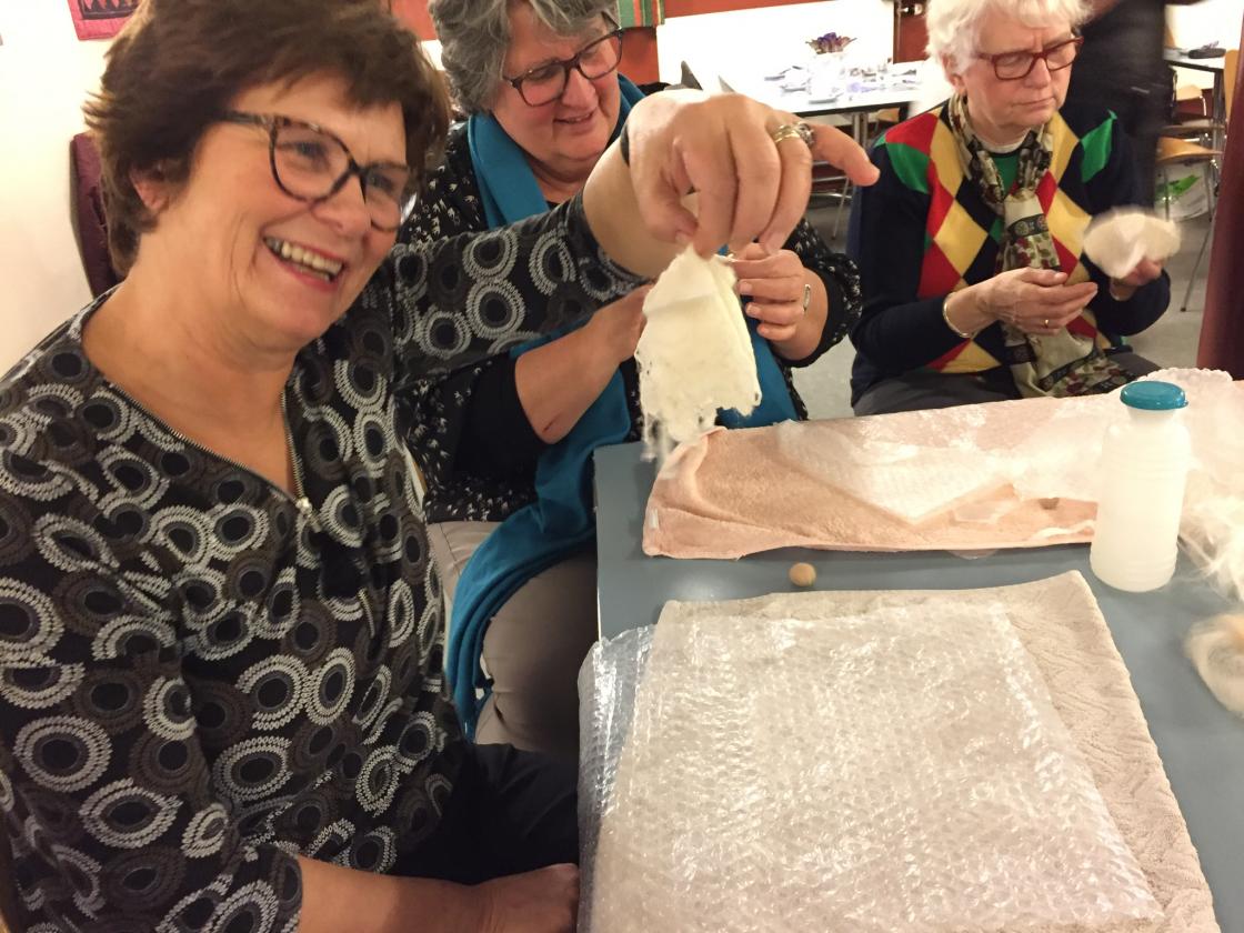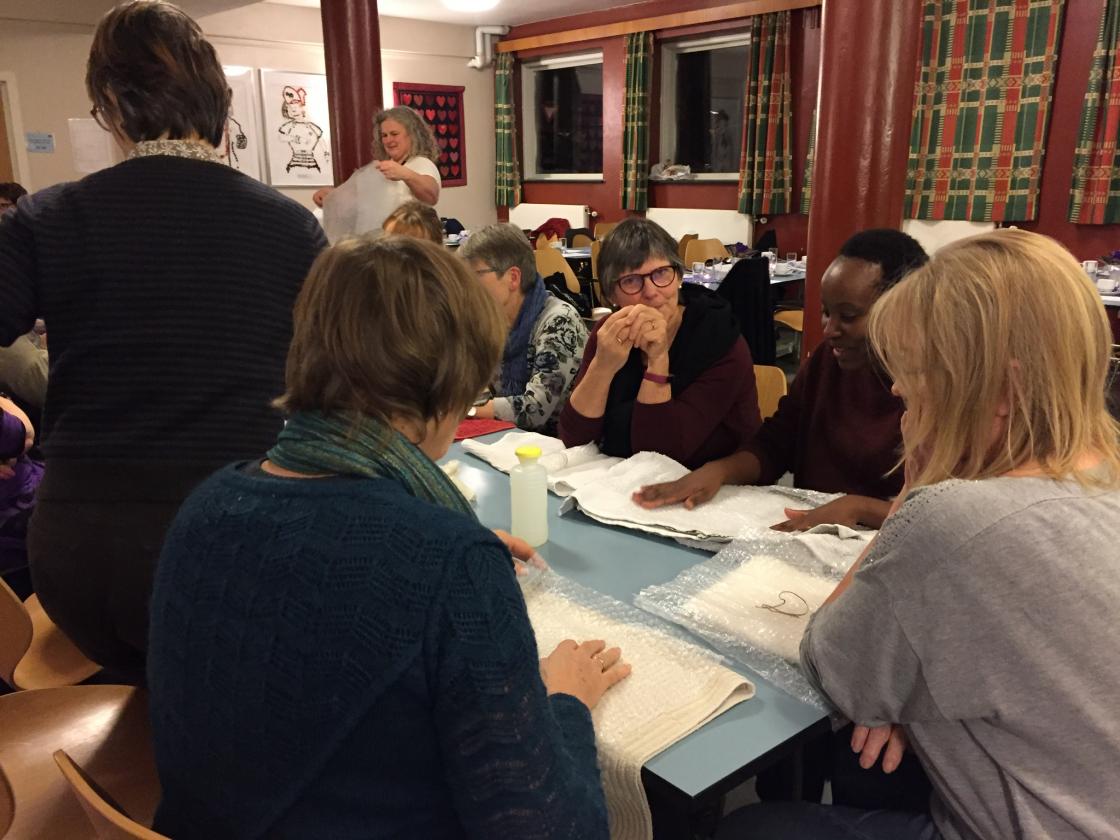 En meget vellykket kveld hvor vi hadde temaet tovede engler.Brita Opheim Movig veiledet oss.Hele 29 medlemmer møtte opp. Det ble stor iver rundt langbordet.Engle "catwalken".