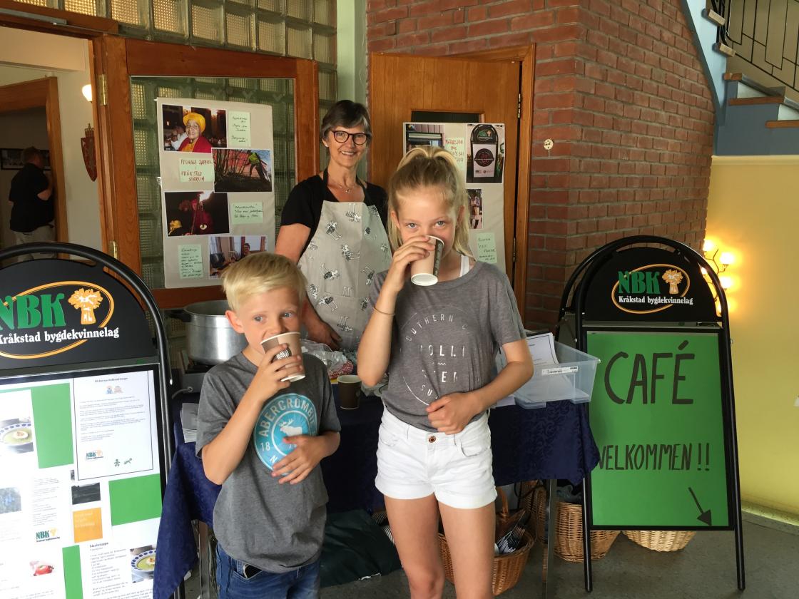 I underetasjen på Samfunnshuset hadde vi cafe med salg av rømmegrøt,sveler og kaker. Salget gikk strålende!!!