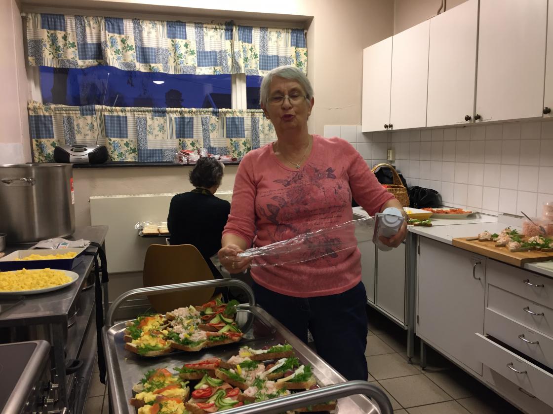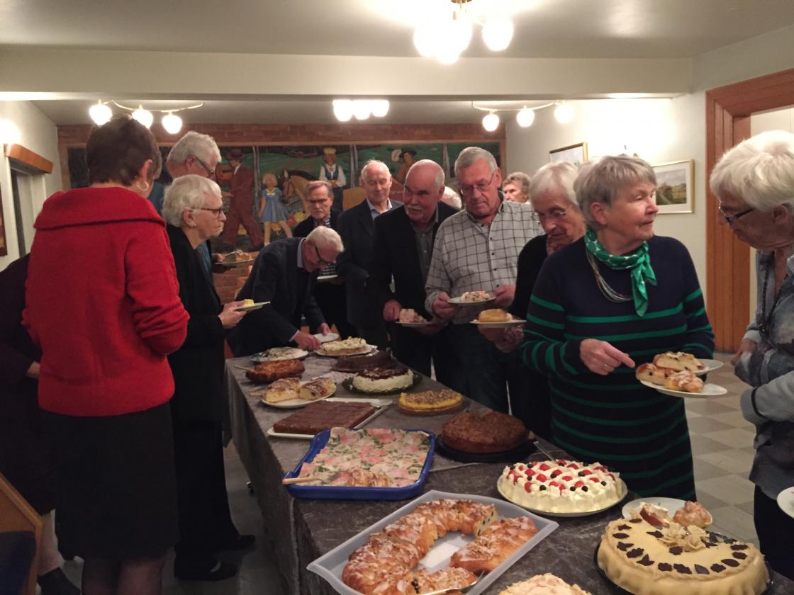 Det ble servert snitter og kaker. Dyktige damer i styret laget 400 snitter.Medlemmer i laget kom med mange kaker.