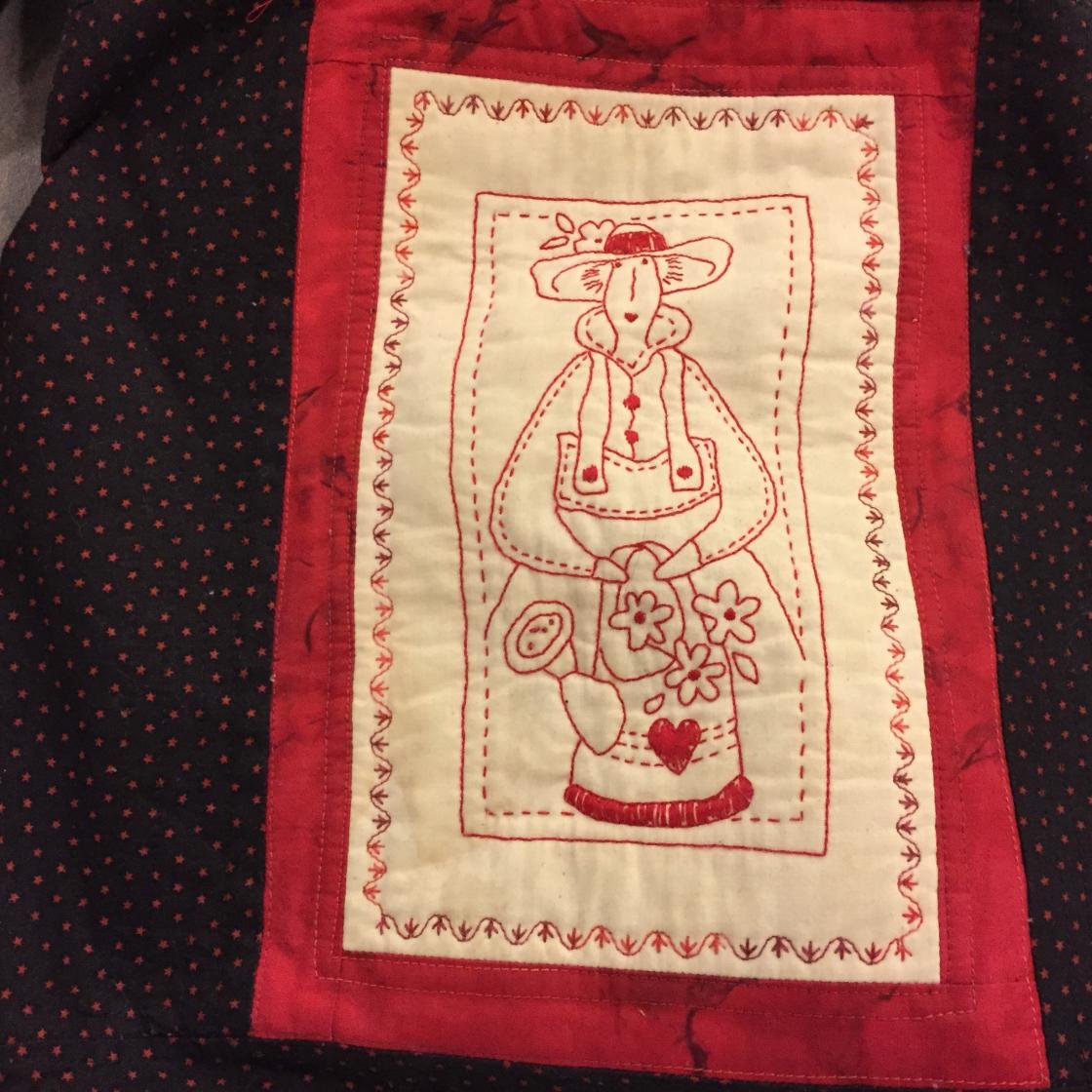 Hun holdt et flott foredrag om alle sine syarbeider i 30 år. De som kom på temakvelden lot seg virkelig imponere. Mange av hennes arbeider har en fortelling.Spesielt til alle hennes kjære.