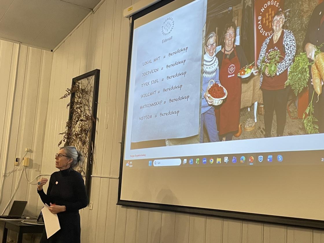 Cesilie Aurbakken fra Norges bygdekvinnelag, fortalte om NBK sin rolle i beredskapsarbeidet, og arbeidet med å bygge NBK til en solid beredskapsorganisasjon for fremtiden.