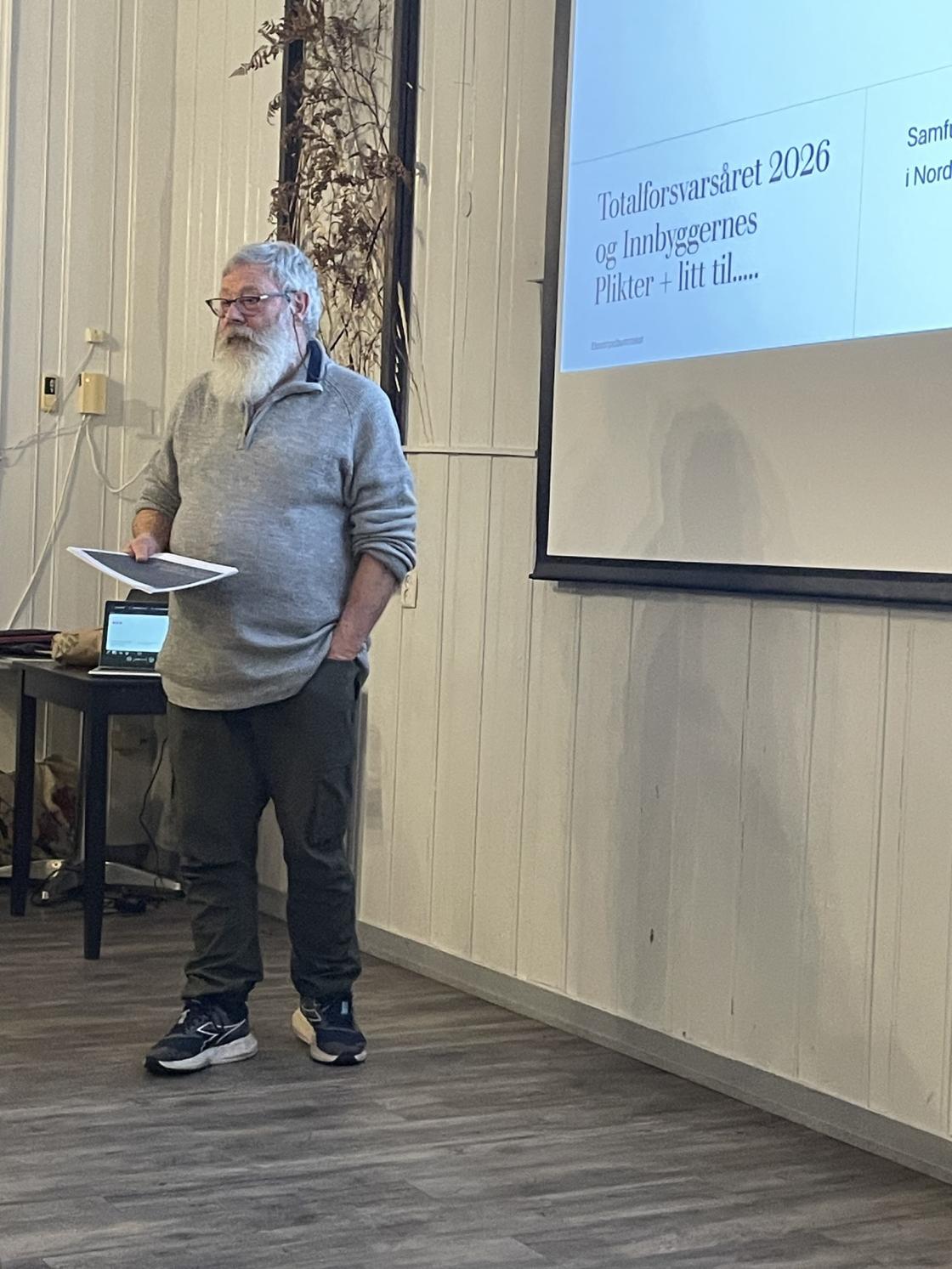 Espen Hallan, Fagsjef for samfunnssikkerhet og beredskap i NF-kommune la fram kommunens tanker rundt totalforsvarsåret. Kommunen ville bruke totalforsvarsåret til å styrke grunnberedskapen. Det viktigste er å holde hjulene i gang.