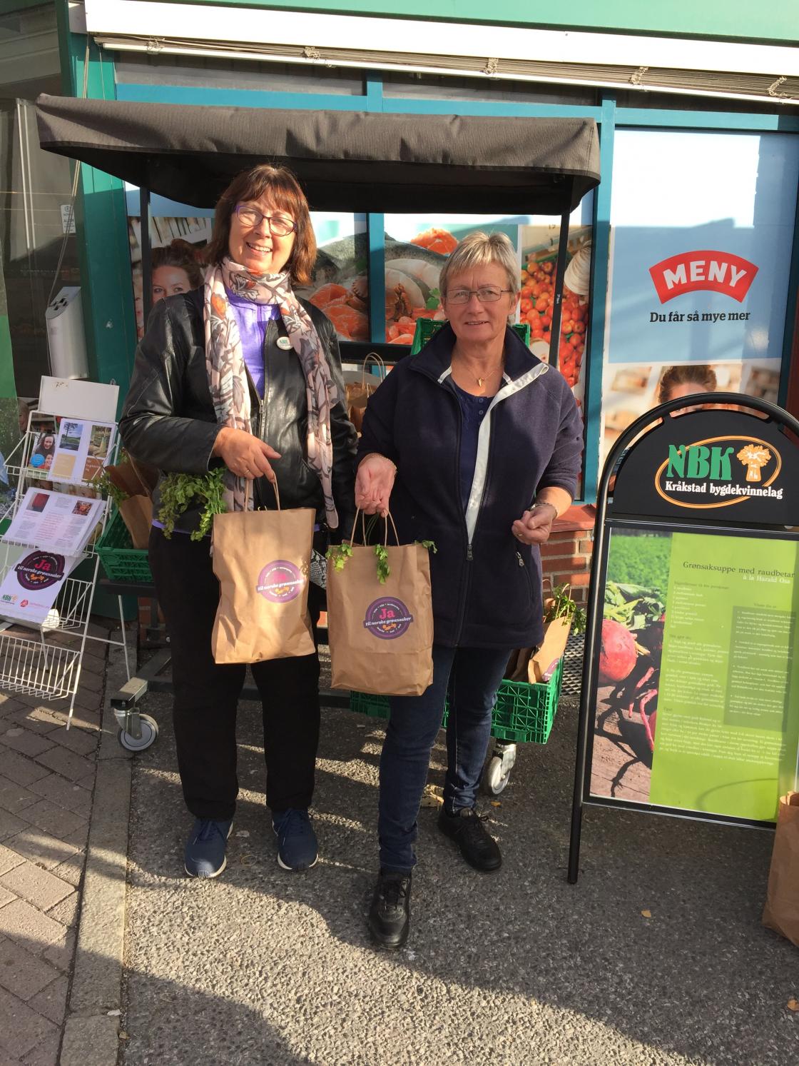 Kråkstad Bygdekvinnelag og Ski Bygdekvinnelag samarbeidet om dette. Vi startet dagen med besøk hos ordfører Hanne Opdan.Vi overrakte en pose med grønnsaker.Så gikk turen til Meny Eikeliveien på Ski hvor vi hadde stand.Her delte vi ut 120 poser med grønnsaker. I hver pose lå det en oppskrift på grønnsaksuppe til 4 personer. Dette ble veldig godt mottatt av Meny;s kunder. Bare blide fjes å se. Vi hadde også smaksprøve på suppa.Den var GOD!!