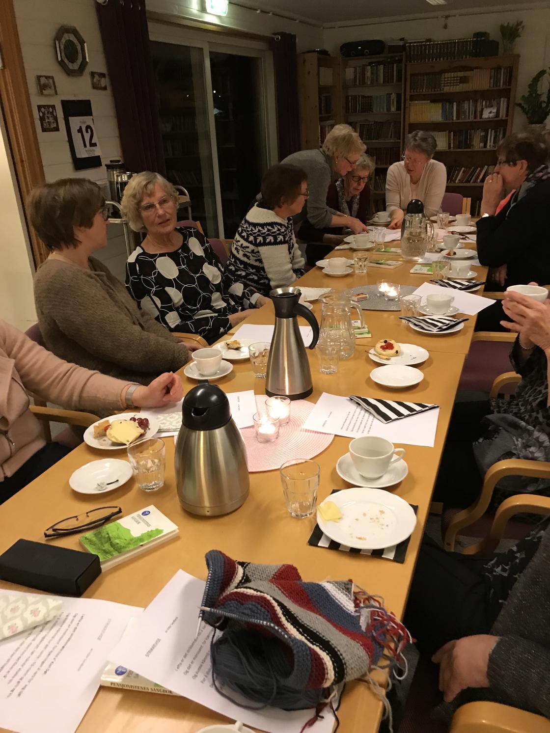 Mandag kveld hadde vi strikkekafè, og mange flittige strikkersker lyttet interessert til Ingrid Næss, opprinnelig fra Kvelde, mangeårig sykepleier, jordmor og misjonær som har tilbrakt de fleste år siden 1979 i Kenya. Hun har bodd flere steder i landet, men tilbrakte de første årene i et lite samfunn , nordvest i Kenya, som heter Seker. Her tok hun, som 29 åring, fatt på en langvarig oppgave med å lære de innfødte kvinnene, først og fremst om hygiene, og deretter om medisiner. De var meget skeptiske. Barnedødeligheten var stor fordi alle kvinnene var omskåret. Omskjæring var nødvendig for å bli gift. En kvinne hadde ingen verdi før de kunne føde barn. Ingrid underviste i konsekvenser om hva omskjæring kunne føre til. Det tok mange år før dette ble bedre. Nå er omskjæring forbudt ved lov. Evangeliet slo rot, og endringene fulgte. Det ble et bedre samfunn. Mennene har også blitt forandret. De tar mer del i oppgaver med barn og hjem nå.