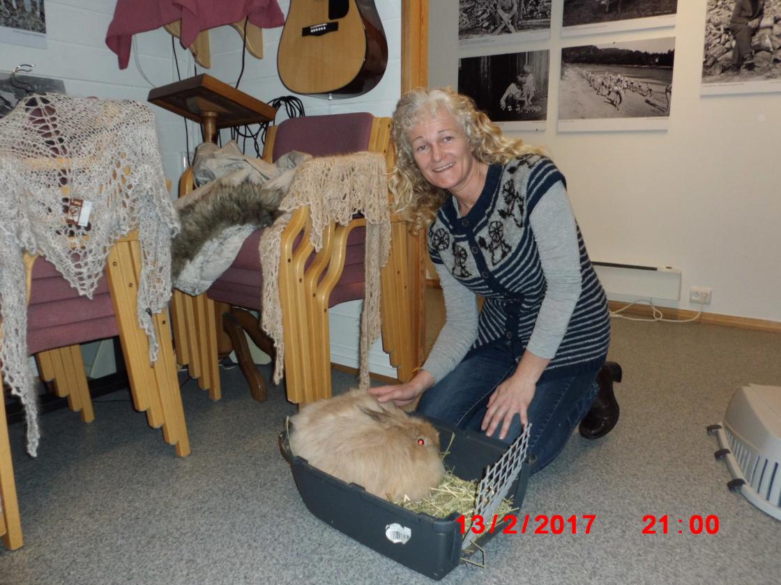 Solveig Ellingsen har lang erfaring med strikking, spinning og - - fordypning i angorakaniner og spinning av angoraull. Hun har ca. 40 kaniner, som må stelles på beste måte. Kaninene må klippes ca. hver tredje måned, og må ha det godt og varmt når de er nyklipte. Hver kanin har eget bur, men burene er i et fellesskap, slik at dyra har "selskap". De må ha spesielt kraftig fòr for å produsere mye og god ull. Alle har navn. Den eldste, Ulrik, er 6 år. Ulla blir tynnere - og lysere med åra!!