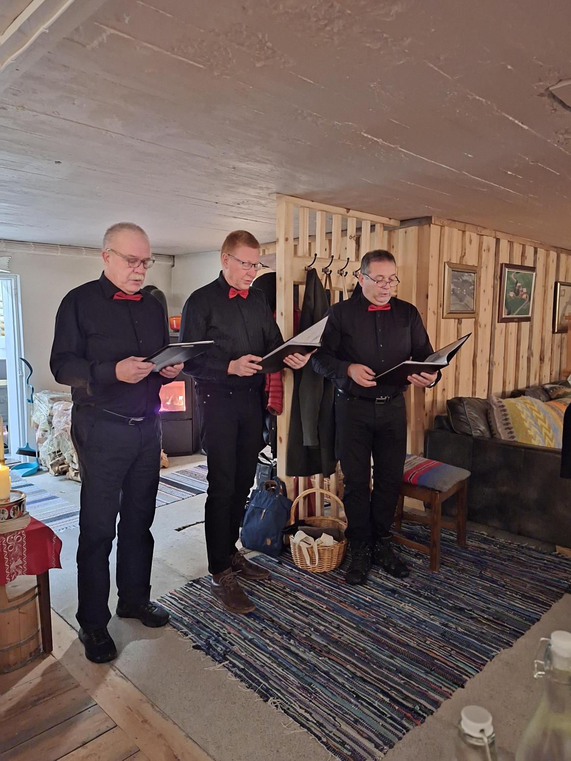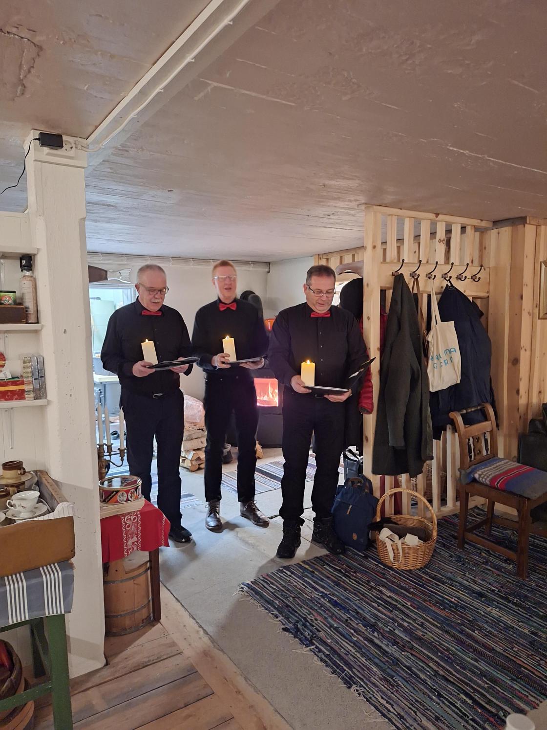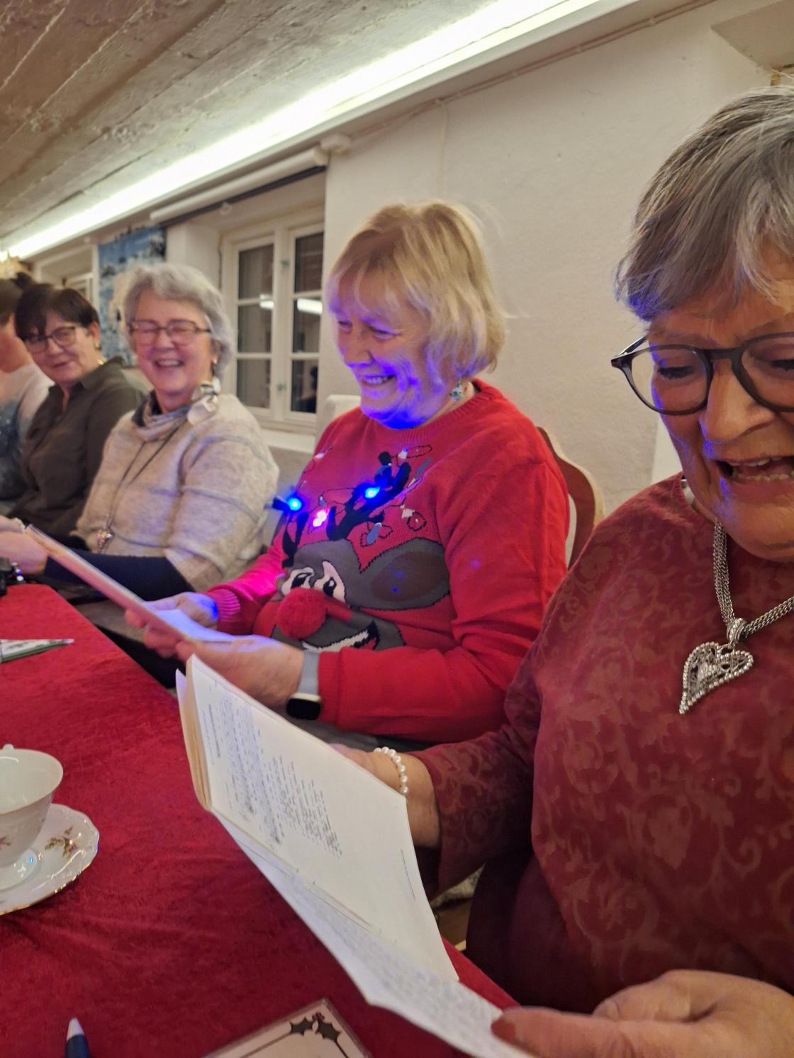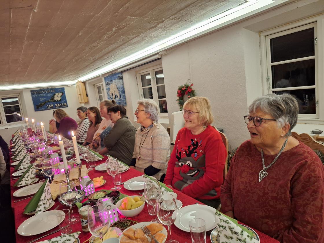 Så er vi i adventstida, og med den vårt tradisjonelle adventtreff. Feststemte damer i alle aldre møttes til god mat og heimlaga øl. Vi øvde på julesanger, og hadde loddtrekning. Overraskelsen i år var tre av våre ektemenn som stilte opp som Santa Lucia, der vi fikk vår egen sang. Den lød slik: Det lyser i skogagrene, av tindrande ljos i kveld men ingen små barnehender, er det som ljosa held. Å klåre dei står og lyser, for kvinner i bygda vår, som styre og stelle for alle, så dei får det trygt og godt. I kveld kan døkk feira prisen, dei beste i Noregs land så kos døkk med mat og drikke, laga for eiga hand.