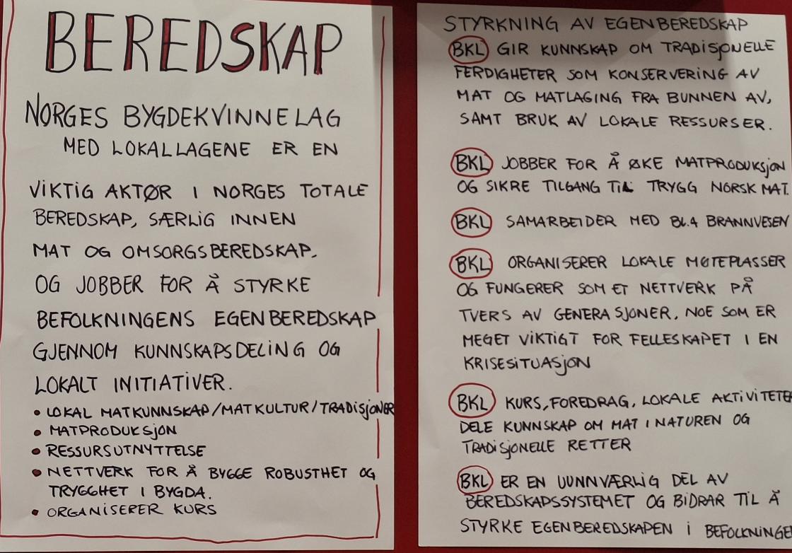 Lesjaskog bygdekvinnelag stilte sammen med røde kors, ambulanse, politi, viking, brannvesen og andre til felles stund med fokus på beredskap. Vi fokuserte på hva vi er i forbindelse med beredskapen i bygda. Vi serverte rabarbrasuppe og grønnkålchips, noe som falt i smak. Kjekt når ungene lurer på hvordan de kan lage det samme, og spør om de kan få mere.