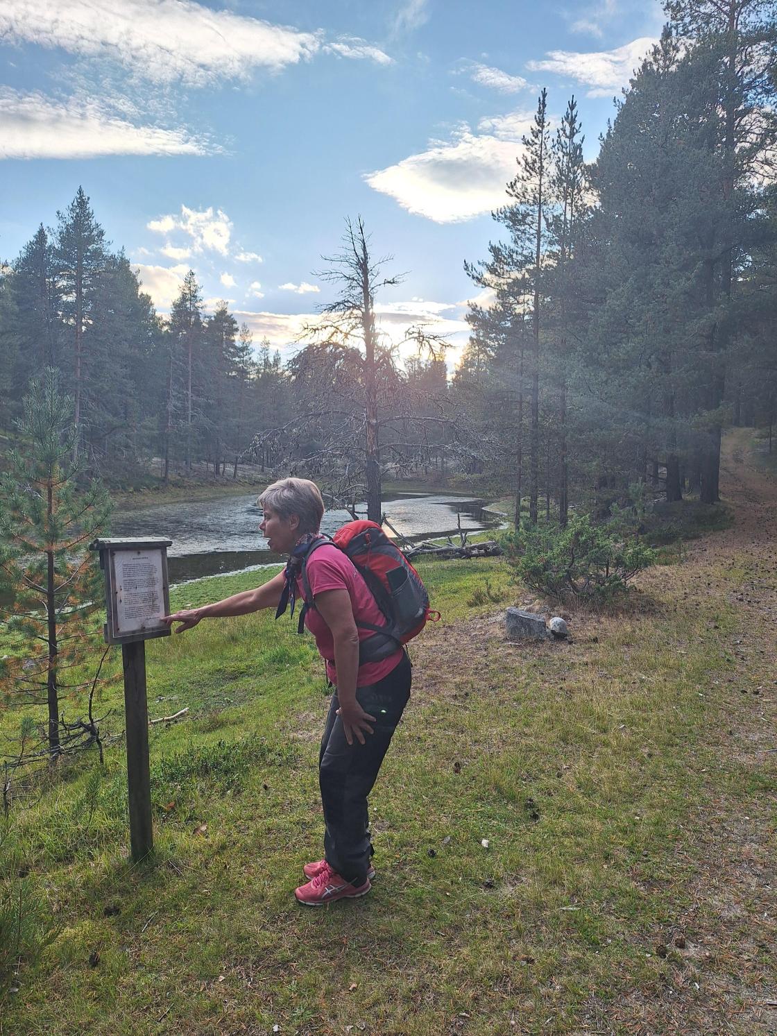 Vi var invitert til å ta med sitteplate, gode sko, kopp og godt humør. Og at det var ett lite stykke å gå. Vi gikk i fotsporene etter jernverket på Lesjaverk og en av koiene ved ei "mile". Flott høstvær og god guiding