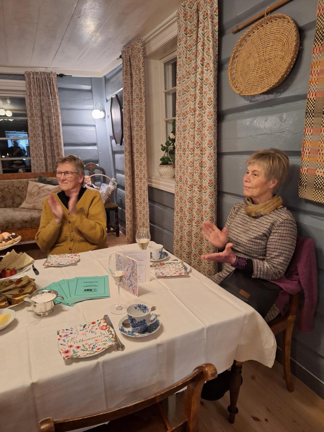 35 damer, de fleste medlemmer, men noen også bygdadamer og hyttedamer som ikke er medlem, møttes til en hyggelig torsdagskveld. Der vi ikke bare måtte yte, men også NYTE. Det ble servert mye lokalmat og te av ymse slag. Bobler hører med ved en slik anledning. De fleste ble med bussen som fraktet oss trygt både bort og hjem av Lesja bilruter. Aasmund og Anne Marie åpnet sitt flotte hus for oss, og det ble både sang og omvisning. Alle var enig om at dette var en vellykket feiring av oss selv som åres lokallag. Monica fra NBK, og Borgny fra OBK deltok med hilsen.