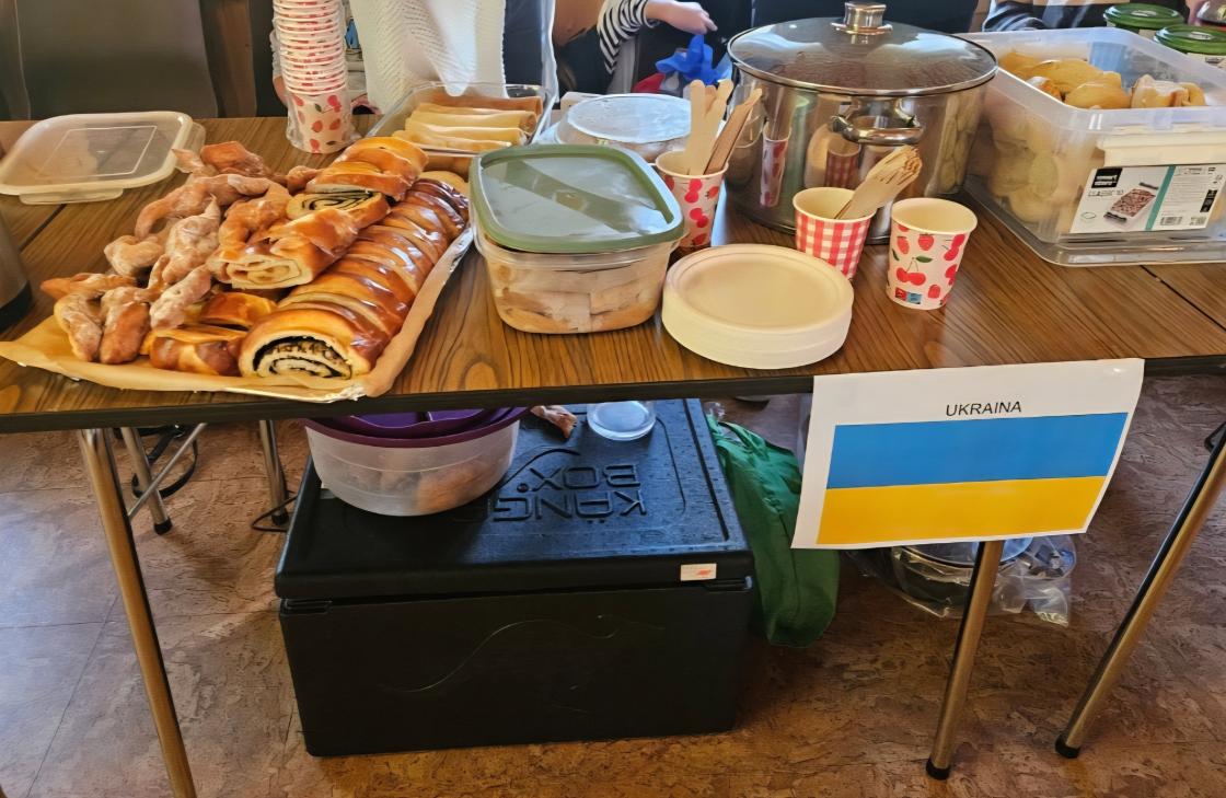 Ingrid og Kari fra Lesjaskog Bygdekvinnelag var sammen med Lesja Bygdekvinnelag på "en smak av Lesja". De serverte moltekrem og skrullo/krumkaker. Det var mat også fra Polen, India, Tyskland og Ukraina. Dette var ett samarbeid med diakonutvalget. Bildene er tatt av Ingrid Fossli