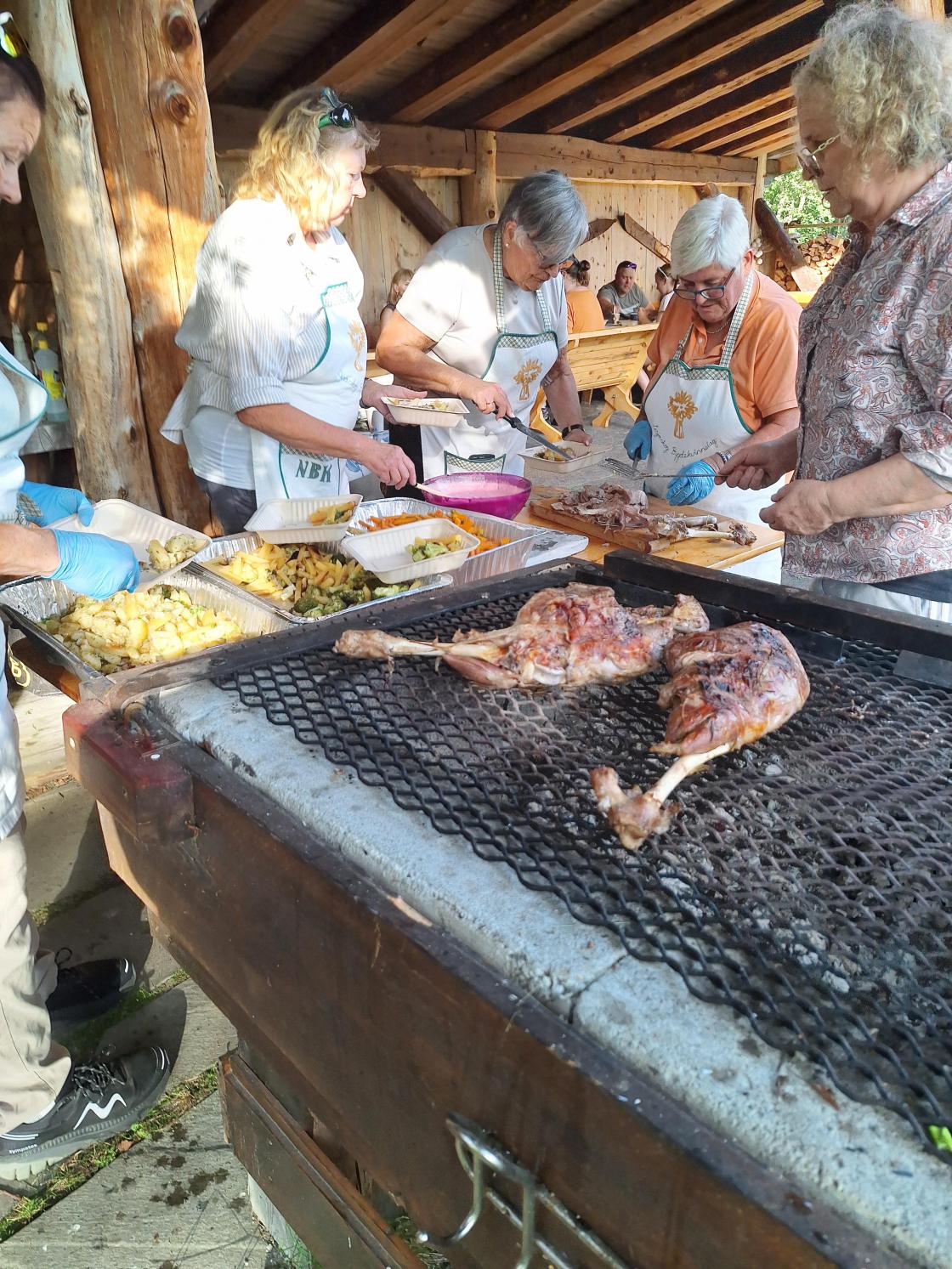 Lesjaskog Bygdekvinnelag samarbeidet med Pål Mølmen på Øyom event, med en kveld der aktivitet og mat stod i fokus. Pål viste frem sine aktiviteter fotballgolf og friesbee, de som ønsket kunne prøve seg. Vi lagde gropekokt lammelår med årets grønnsaker, potet, kantarell og tytingrømme. Deretter bålkaffe og hjemmelagde kaker. Over 40 personer deltok. Været var på vår side med sol og 20 grader. Ivrige bygdekvinner stod for nydelig mat.