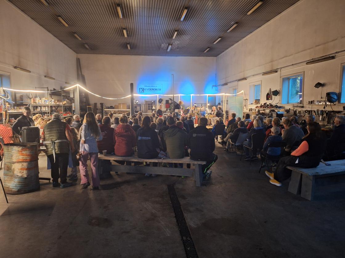 11 september var det konsert i byggehallen/verksted til Kvekroken på Lesjaverk. 30 års jubileum for Lesja Dovre kulturskole. 75 ++ møtte opp og vi serverte kveldsmat av nystekte rundstykker og god kakao av tankmjølk fra nærmeste fellesfjos.