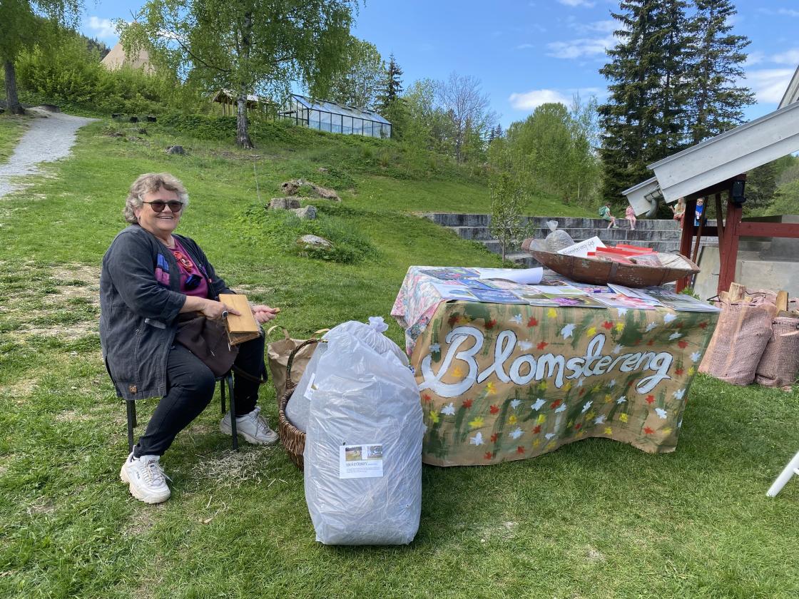Driftige damer elta, knadde og stekte innomhus, to solgte unna ute og Aud satt ved siden av og gav gode råd til blant annet såing av blomstereng.