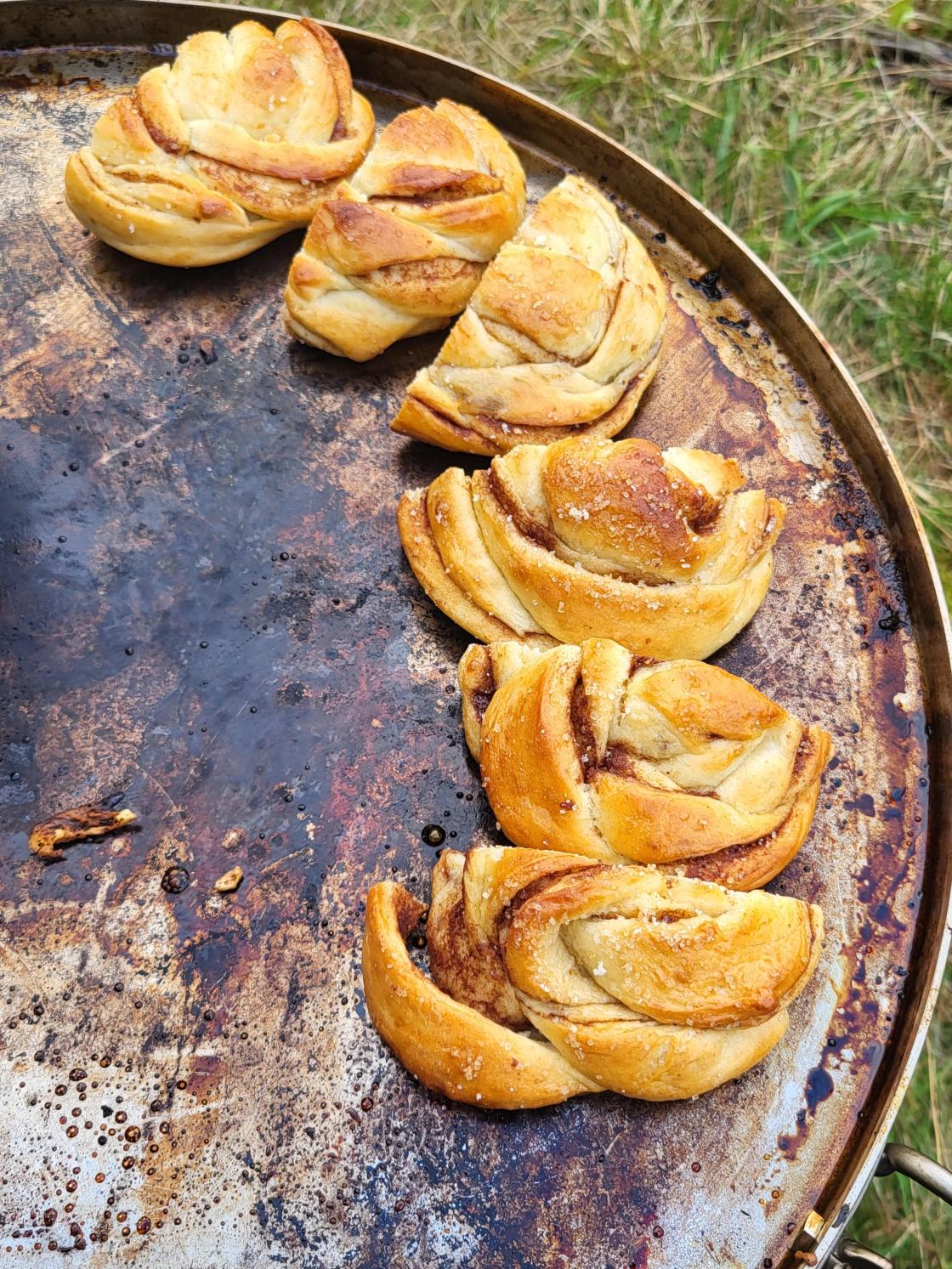 Og noen hadde med kanelsnurrer hjemmefra! En liten lunk på bålet, så blir de rykende ferske :)