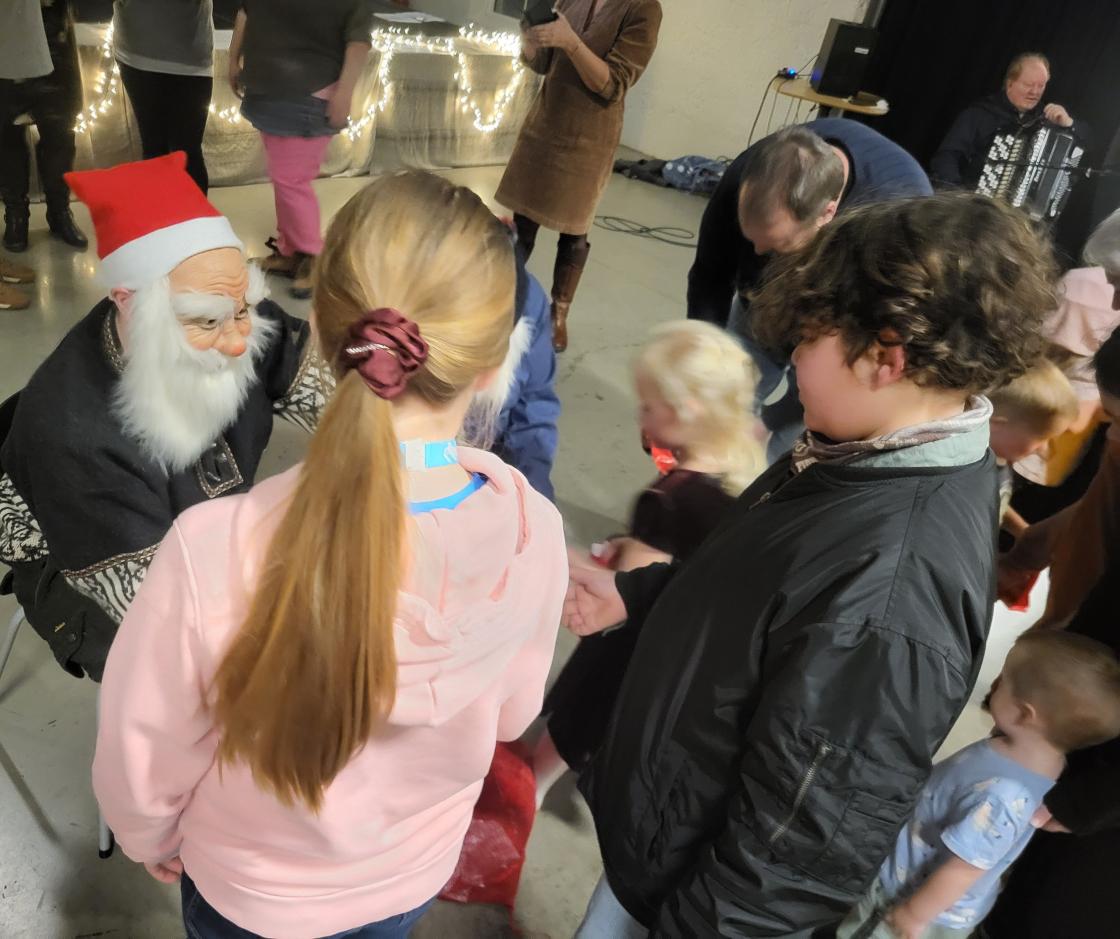 Og til slutt kom fjøs-nissene ! Mange unger og voksne laget stemning i Lokstallen på juletrefest! Det var musikk, sangleker, åresalg med mange fine gevinster og all slags god mat på fat! Tusen takk for fin fest!