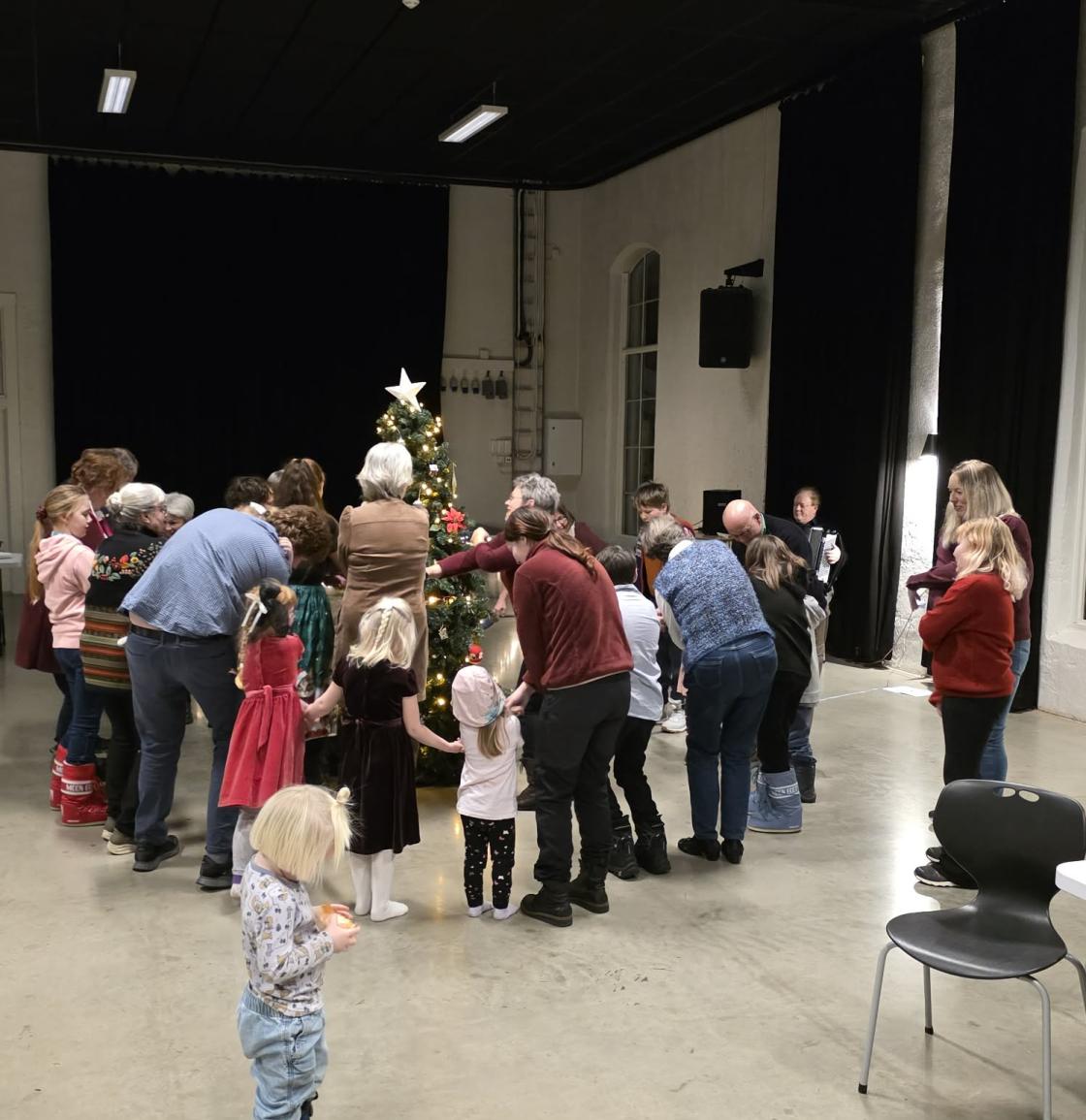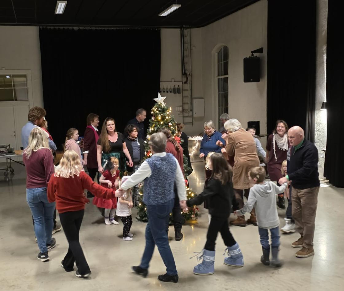 Masse gang rundt juletreet, nydelig mat på fat, ord for dagen, sang og moro😃