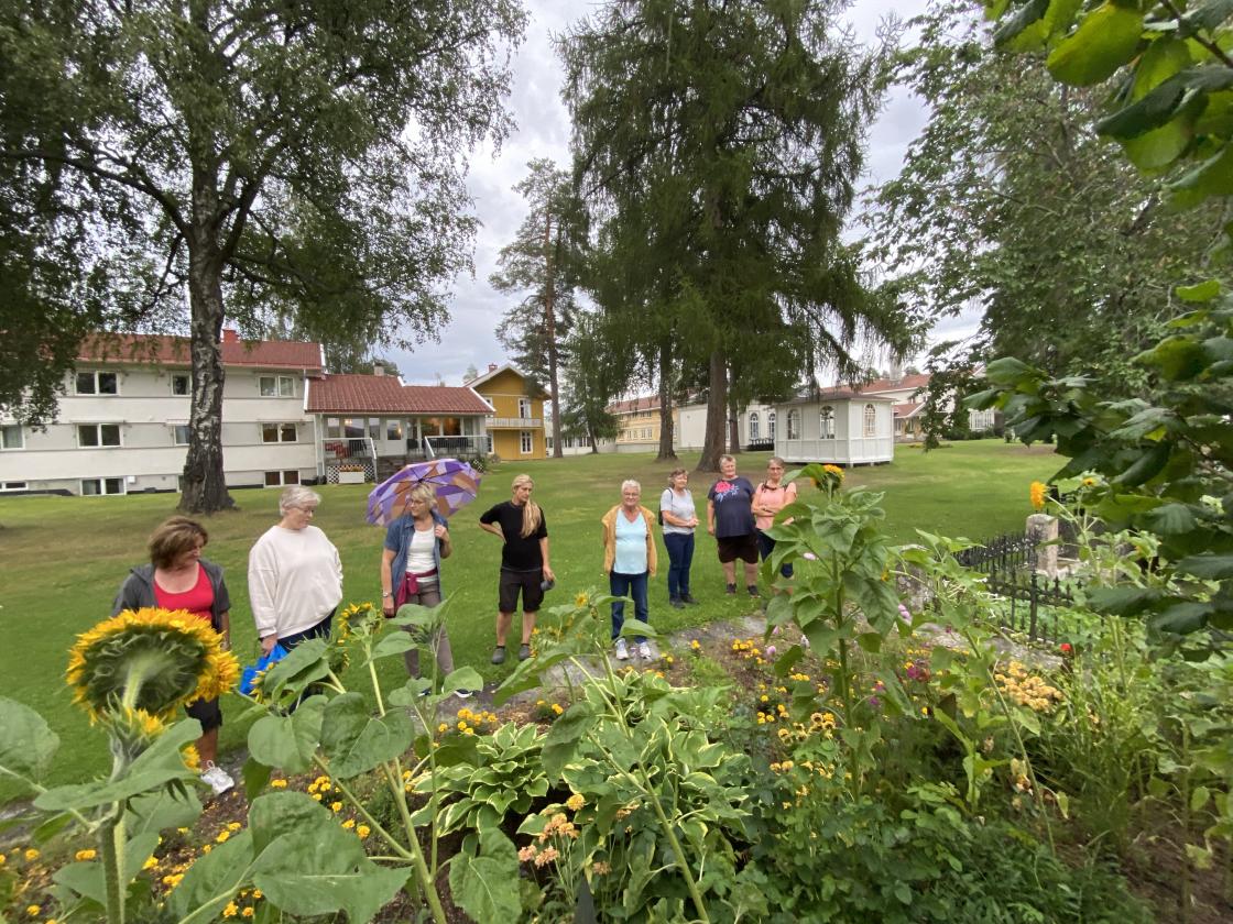 Vi var 8 bygdekvinner som møtte opp for en visningsrunde rundt på Modum Bad av den ene ansatte gartneren. Selv med varm tørr forsommer så var det flere blomsterbed noen mer preget av værforholdene enn andre. Det er flotte områder på Modum Bad med hus, gress og blomsterbed og frukttrær som vi hadde litt «epleslang» (med tillatelse) i. Hyggelig runde med flere forslag ti egen blomsterdyrking. Vi fortsatte kvelde med runde i en privathage til en av våre medlemmer med like flott blomstring.