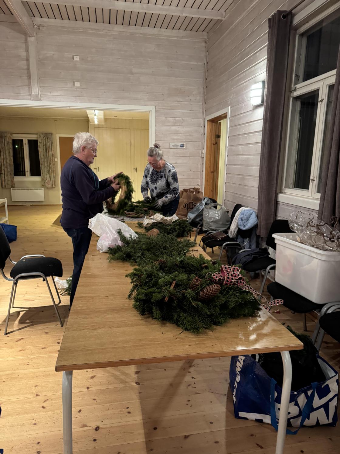 Det ble laget 14 kranser en torsdagskveld!