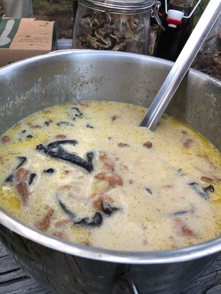 Det ble servering av fantastisk god soppsuppe og syltet kantarell og soppsoya - som eksempler på hva man kan bruke soppen til.