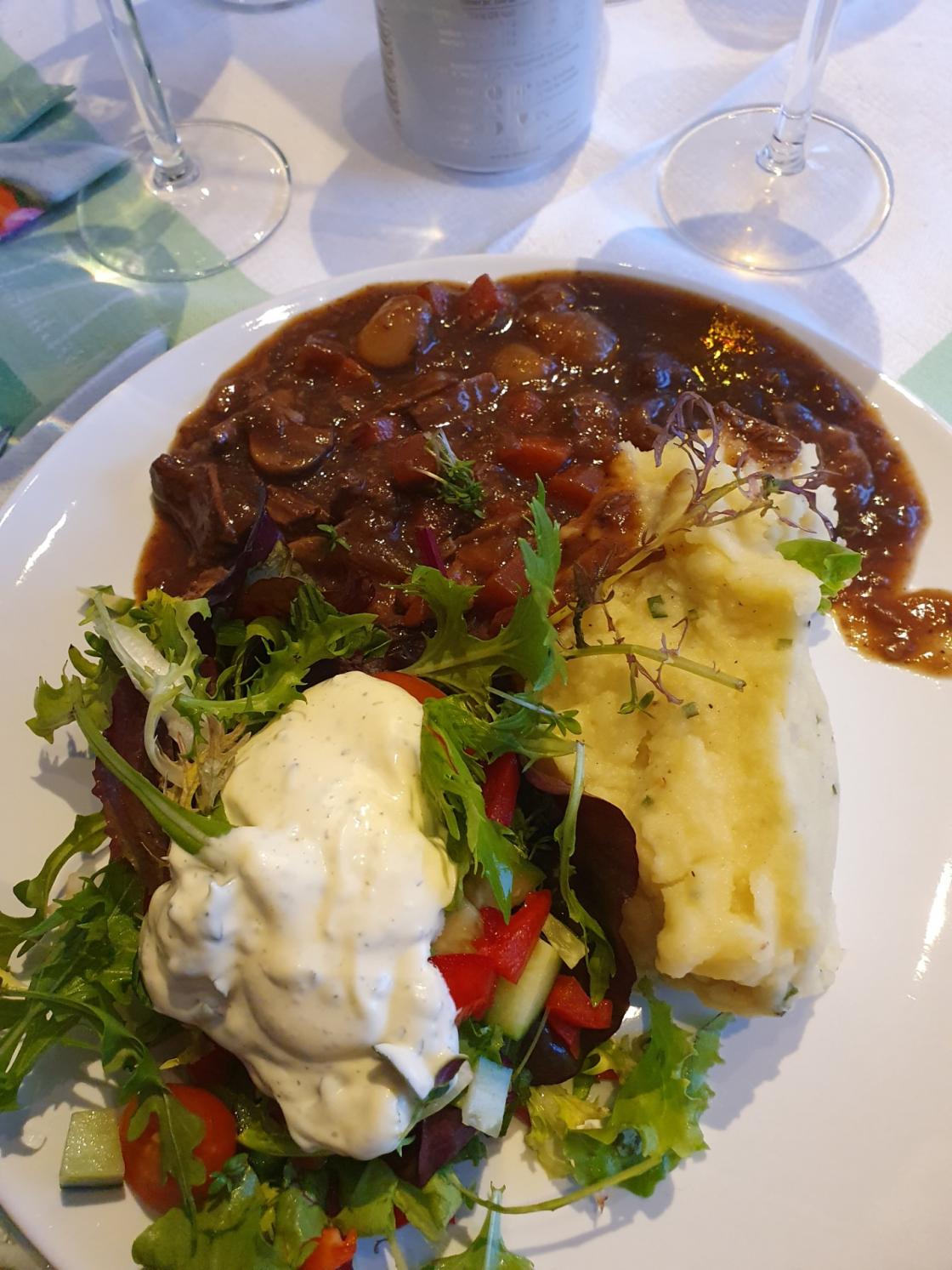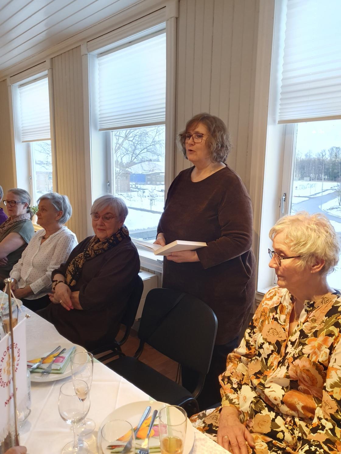 Markeringen startet med en velkomst drink og at Nora Ouff ønsket velkommen. Berit Borgen leste noen morsomme historier fra en av bøkene til Linn Skåber. Deretter ble det servert Biff Bourgogne med mandelpotetpurè og salat. Iskake og kaffe til dessert.
