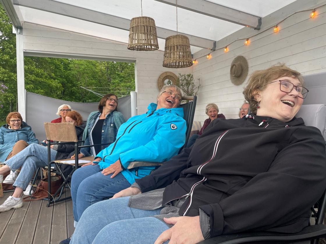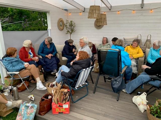 Det ble litt kjølig, dette var den eneste kvelden på lenge som det kom noen regndråper. Vi pakket oss sammen under et lite tak i utestua. Men humøret ble beholdt og vi koste oss med medbrakt drikke og litt å bite i.