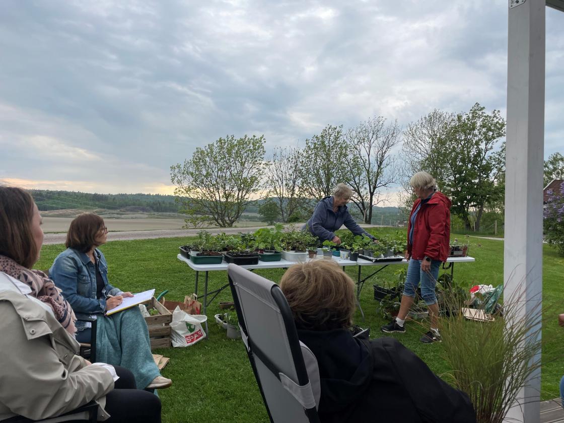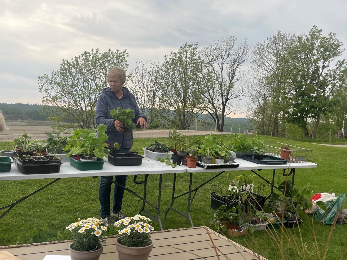 24 damer samlet seg til avleggerauksjon hos Bente Aas-Haug. Vi hadde mase flotte avleggere som alle var medbrakt av medlemmene i laget. Her var det Stauder, ettårige planter, grønnsaker, urter og noen inneplanter. Masse å velge i, og noe for enhver smak.