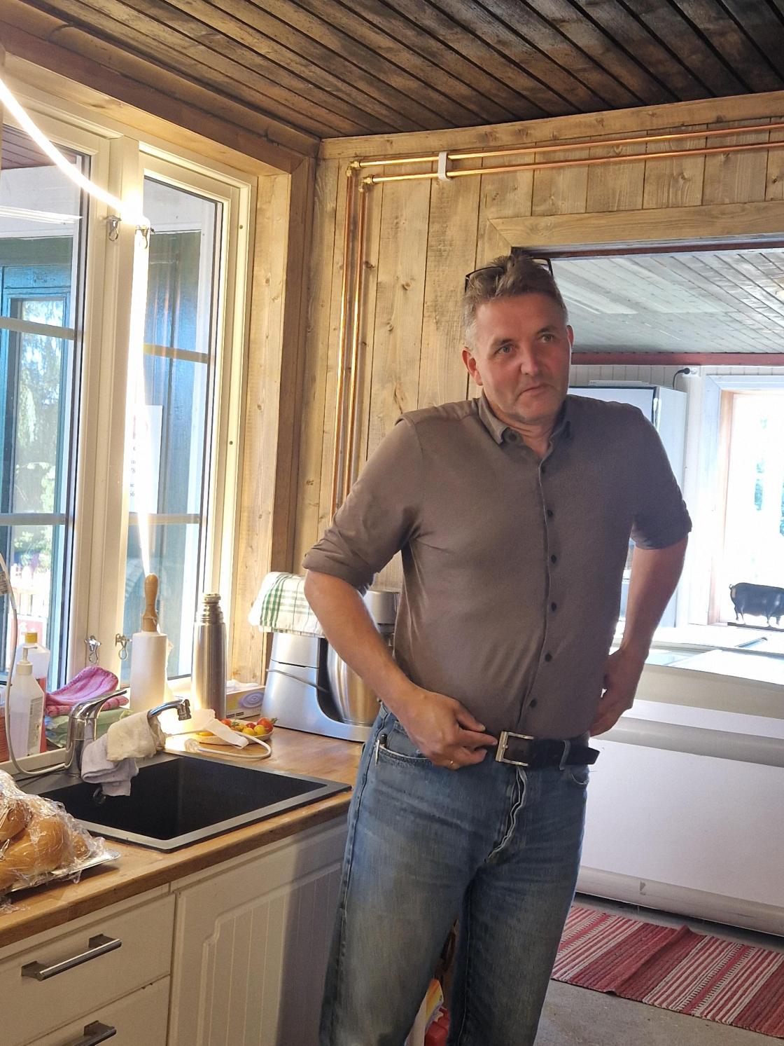 Vi ble tatt godt i mot av Tone Kihle og Øyvind Bjune som fortalte om sin allsidige drift. De driver blant annet med produksjon av svin, storfe (rasen heter Beltet Galloway), korn og frø. De samarbeider med Tønsberg kommune om Grønn omsorg hvor voksne over 18 år kommer hver dag og får oppleve læring og mestring. Det er ansatte fra kommunen som drifter tilbudet.