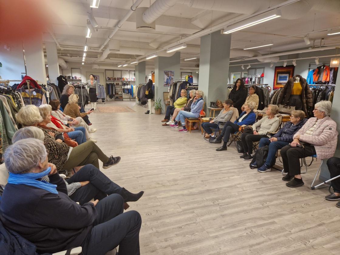 Over 20 damer møtte opp i Fretex butikken i Tønsberg for å få en moteoppvisning av butikkens utvalg av klær, sko og vesker. Vi ble tatt godt i mot av de ansatte og daglig leder Katharina Grønmyhr orienterte om filosofien og hvordan de gjorde brukte klær til ny mote. Fire av våre flotte Nykirkedamer hadde tatt på seg jobben som mannekenger og viste fram et lite utvalg av butikkens utvalg. Dette ble en flott kveld og flere gjorde nok svært gode kjøp i etterkant.