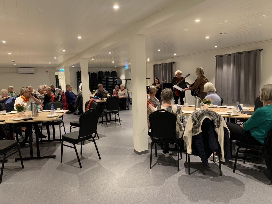 Fyrst hadde vi underhalding av Da Capo jentene som spelte gitar og song for oss. Deretter vart det servert snittar, kake og kaffi før vi gjekk vidare til gjennomføring av årsmøtet.